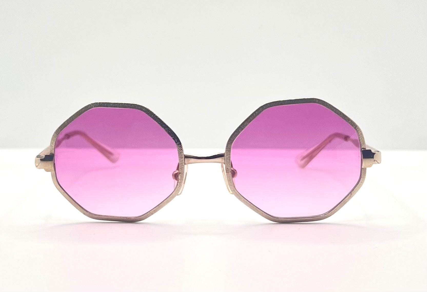 * Lenses: Original to the piece - factory-tinted pink/purple gradient