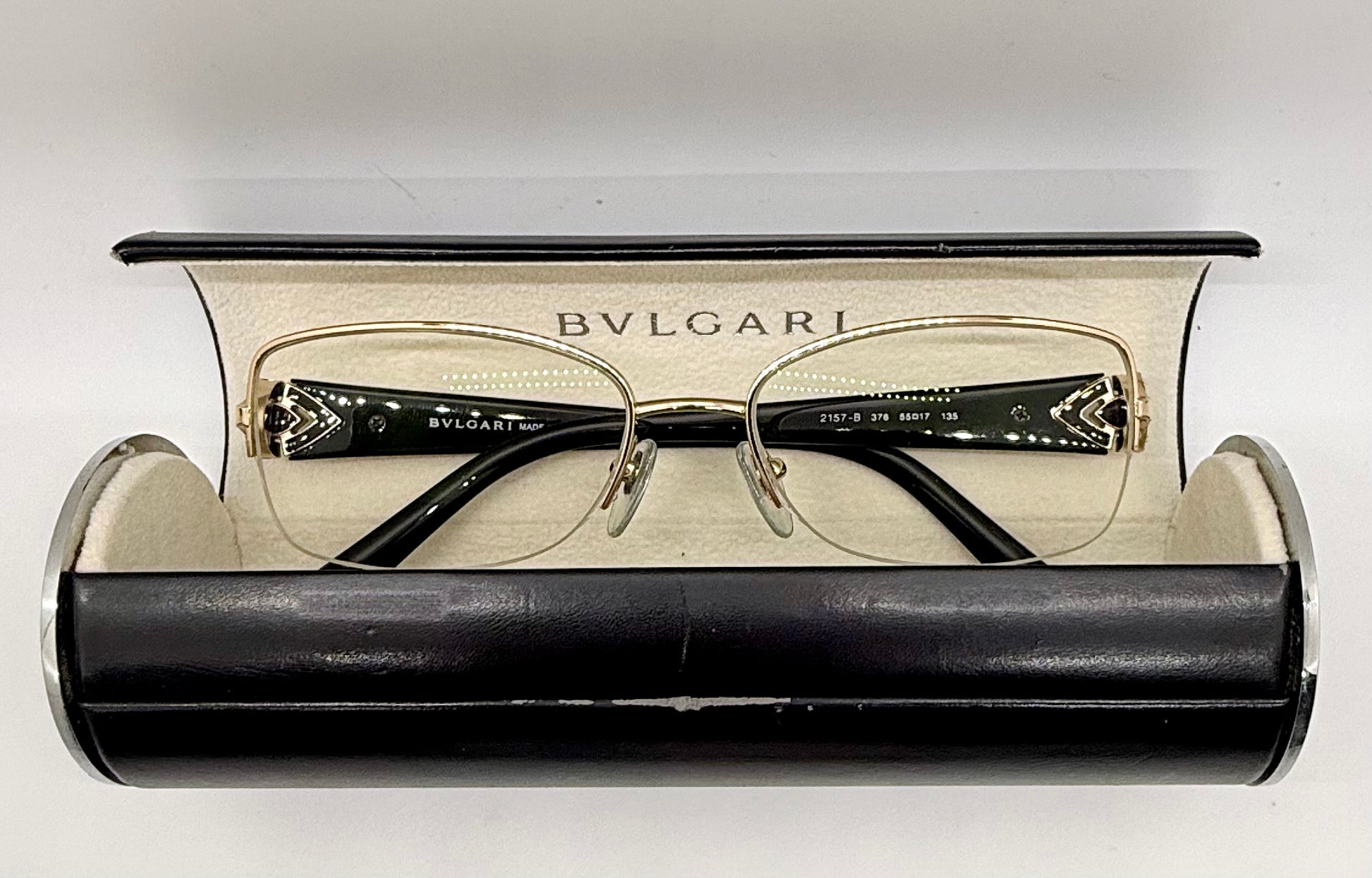 BVLGARI BB2157-B 376 Optical Frames Half Rim Gold Black Italy 55-17-135 w/ Case