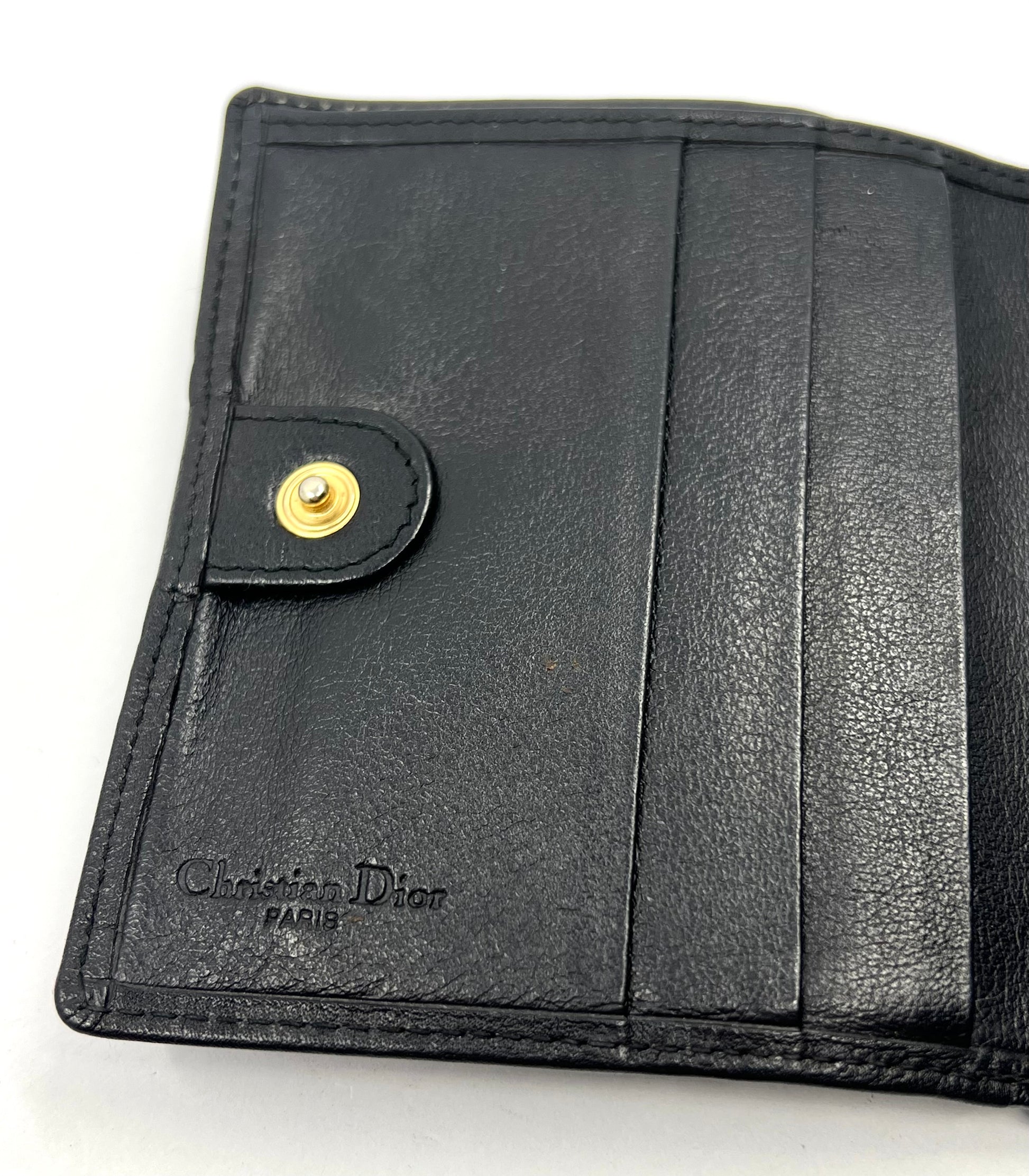 This is a true vintage Dior wallet, not new, not deadstock — worn honestly and correctly for its age.