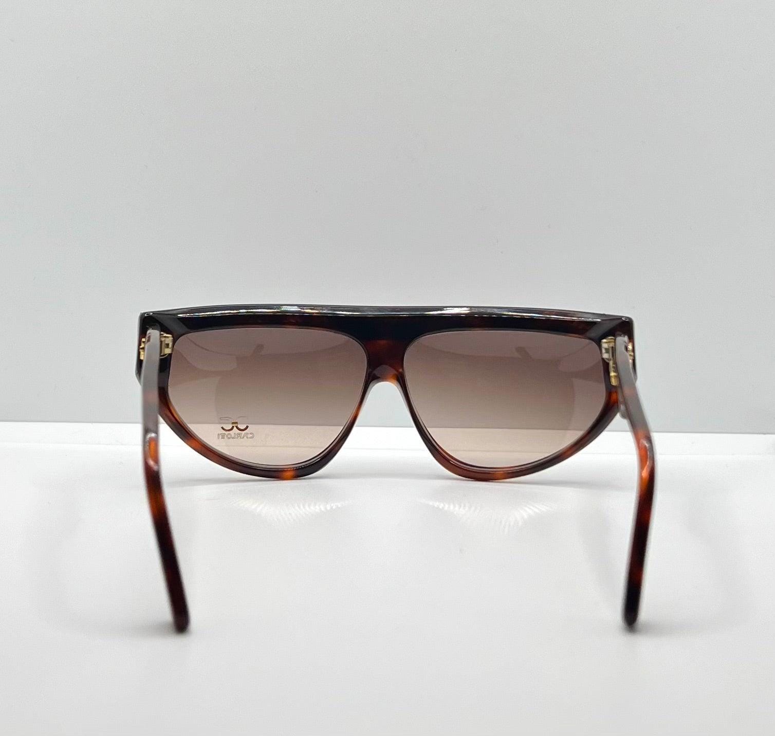 A bold and luxurious pair from the iconic designer Claudia Carlotti, these Stratos CC14 sunglasses capture the avant-garde elegance of 1980s and early 90s European fashion. Handcrafted in France and finished in a rich tortoise acetate with a snakeskin-textured top bar, this pair features: