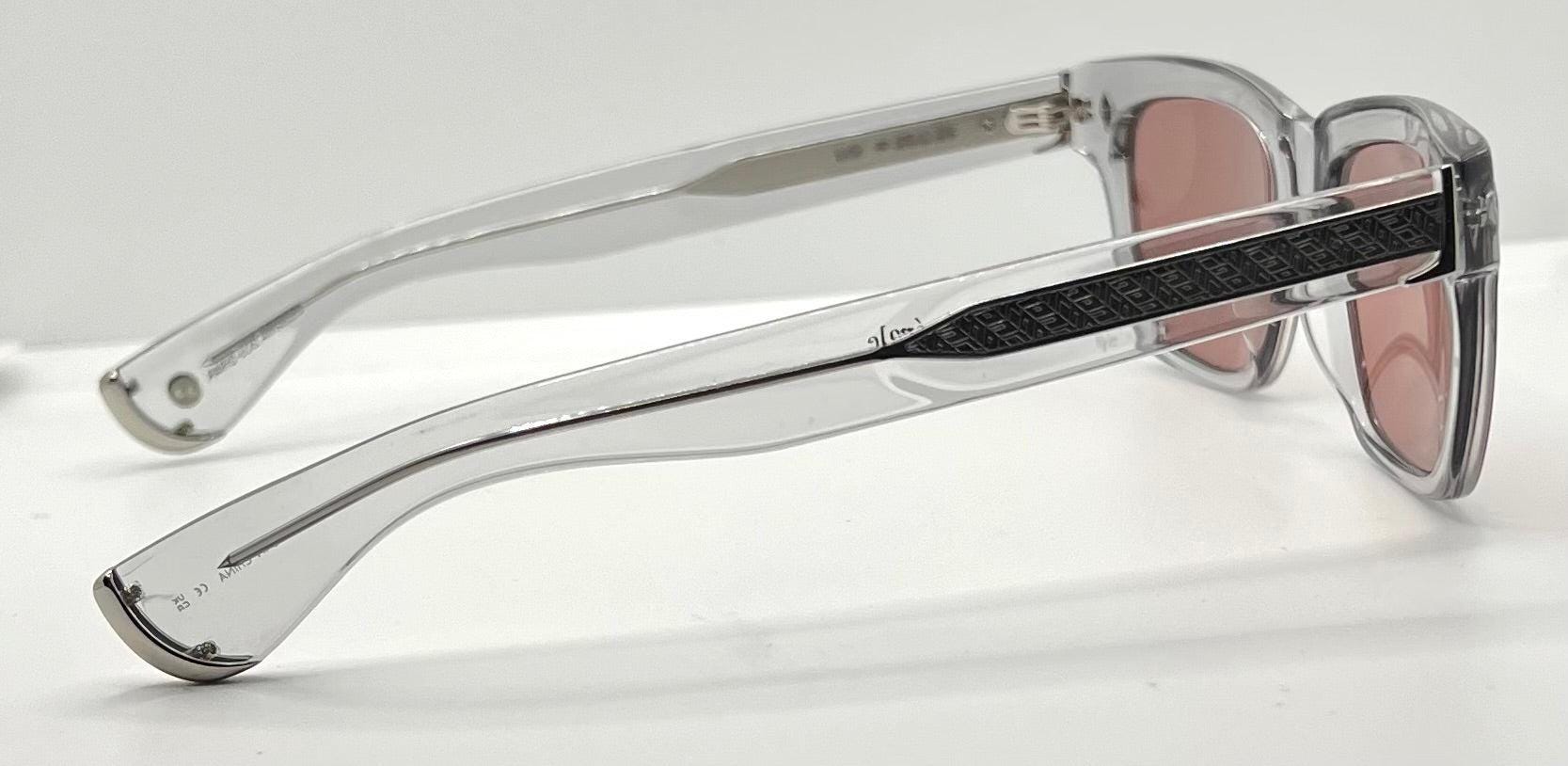 Fitted with brand new Second Chance Customs solid rose-tinted lenses offering full UV protection and backside anti-reflective treatment. Soft yet striking, these lenses are wearable both day and night — designed to elevate the minimalist transparency of the OGX frame while maintaining visual comfort and clarity.