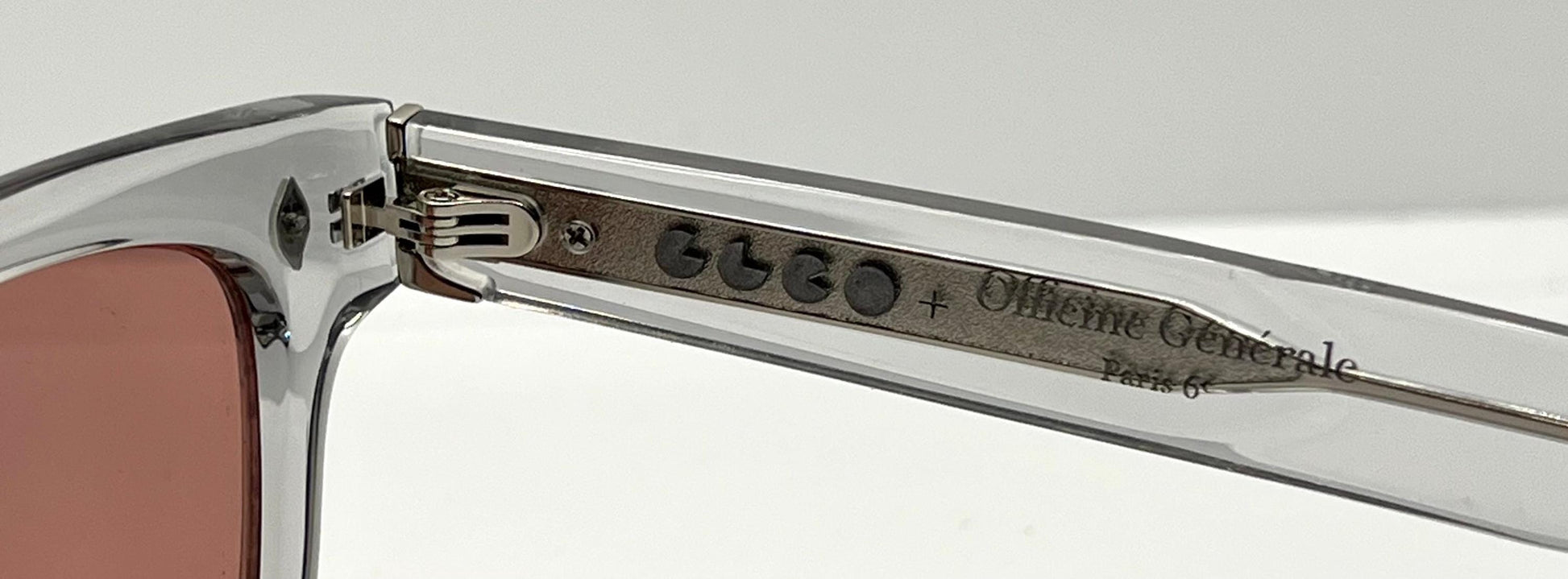 A rare collaboration between Garrett Leight California Optical and Officine Générale, the refined Parisian menswear label. The OGX frame combines GLCO’s timeless “Hampton” silhouette with modern transparency, crafted in crystal-clear acetate and finished with precision detailing that balances West Coast ease with Parisian sophistication.