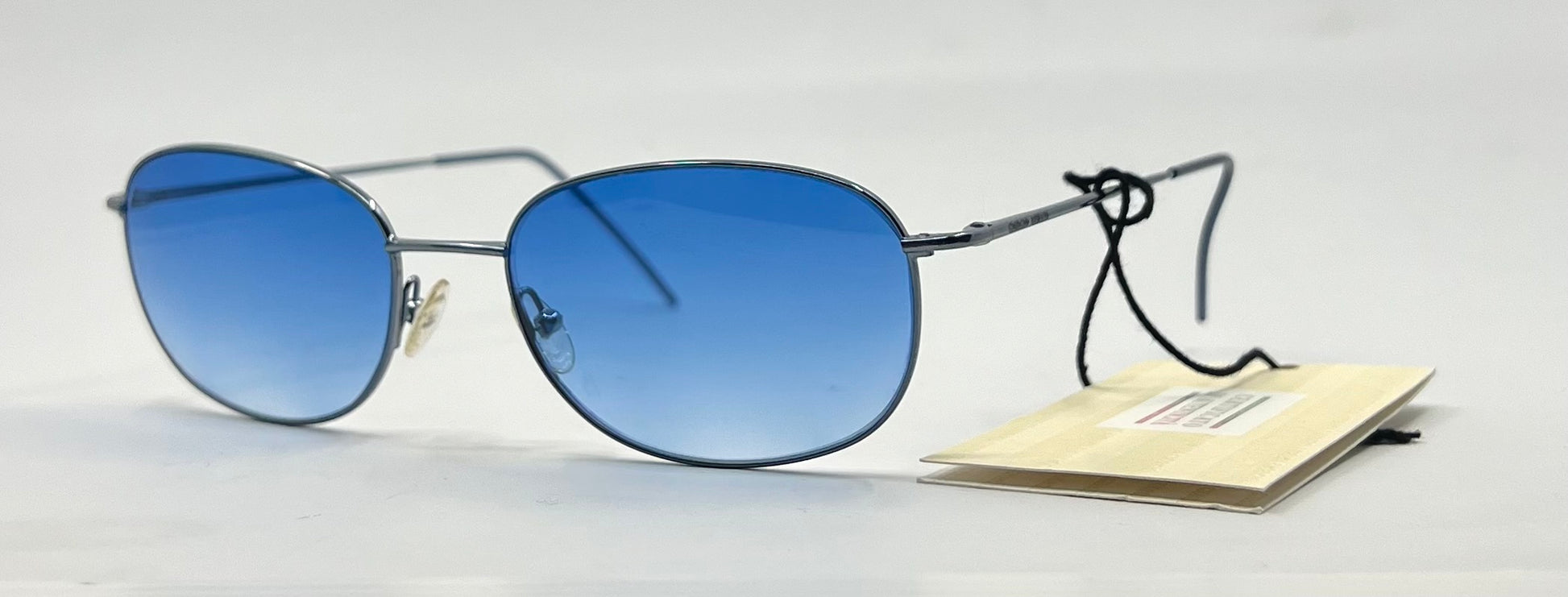 A true Deadstock Giorgio Armani GA 22 (color 628) in unworn, untouched condition with all-original factory blue gradient lenses. Ultra-lightweight metal construction, sleek oval lenses, and that unmistakable late-90s/early-2000s Armani minimalism.