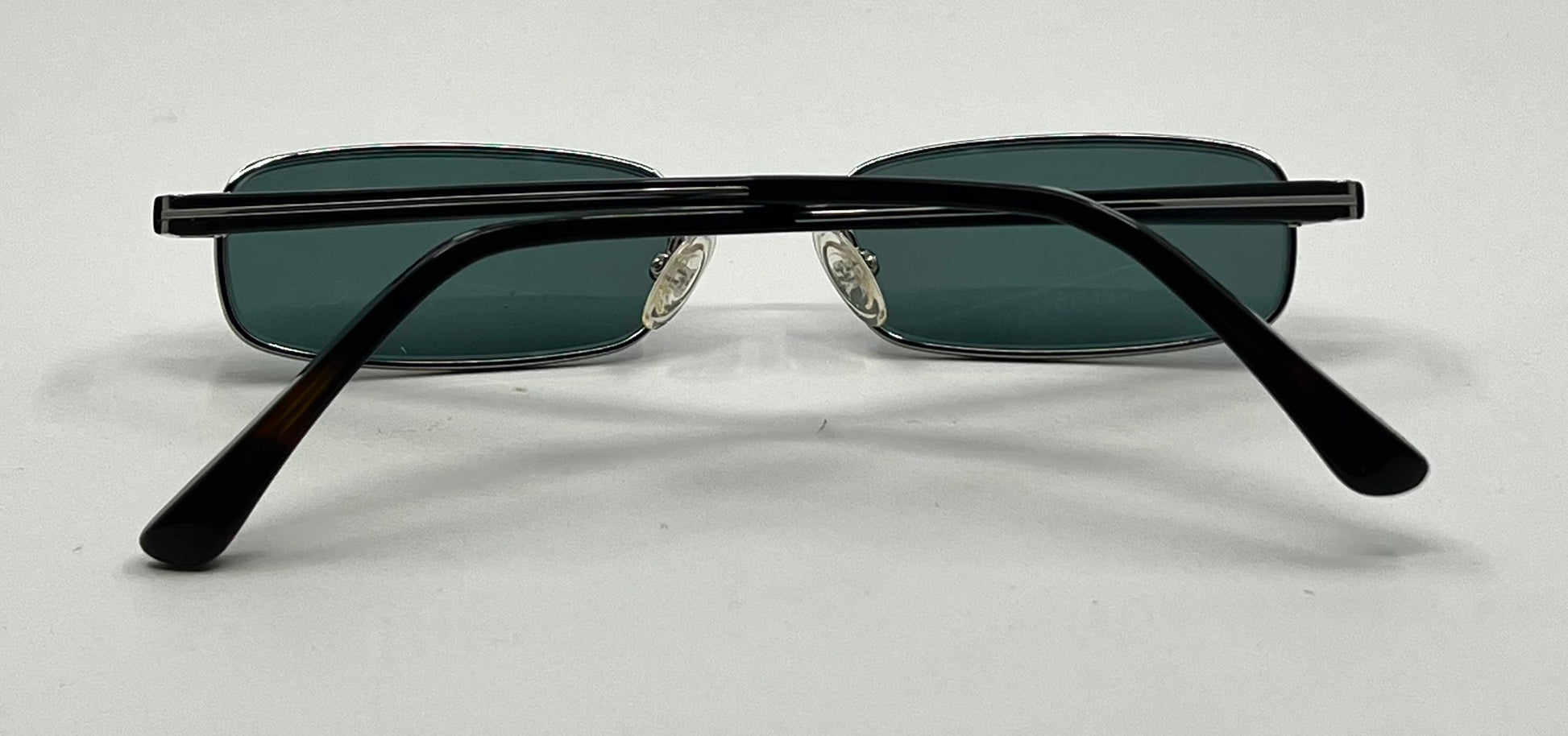 Unworn vintage Giorgio Armani GA272 T12 sunglasses, made in Italy and designed during the late 1990s/early Y2K era. This model features a sleek rectangular metal front paired with classic black acetate temples — a clean, minimalist silhouette that reflects Armani’s refined design language of the period.