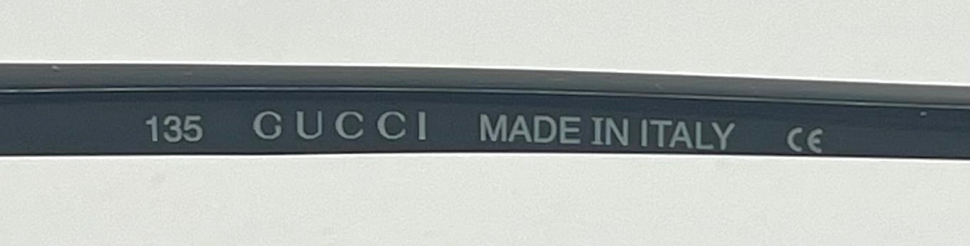 - Metallic gunmetal frame with black temple arms and engraved GUCCI logos