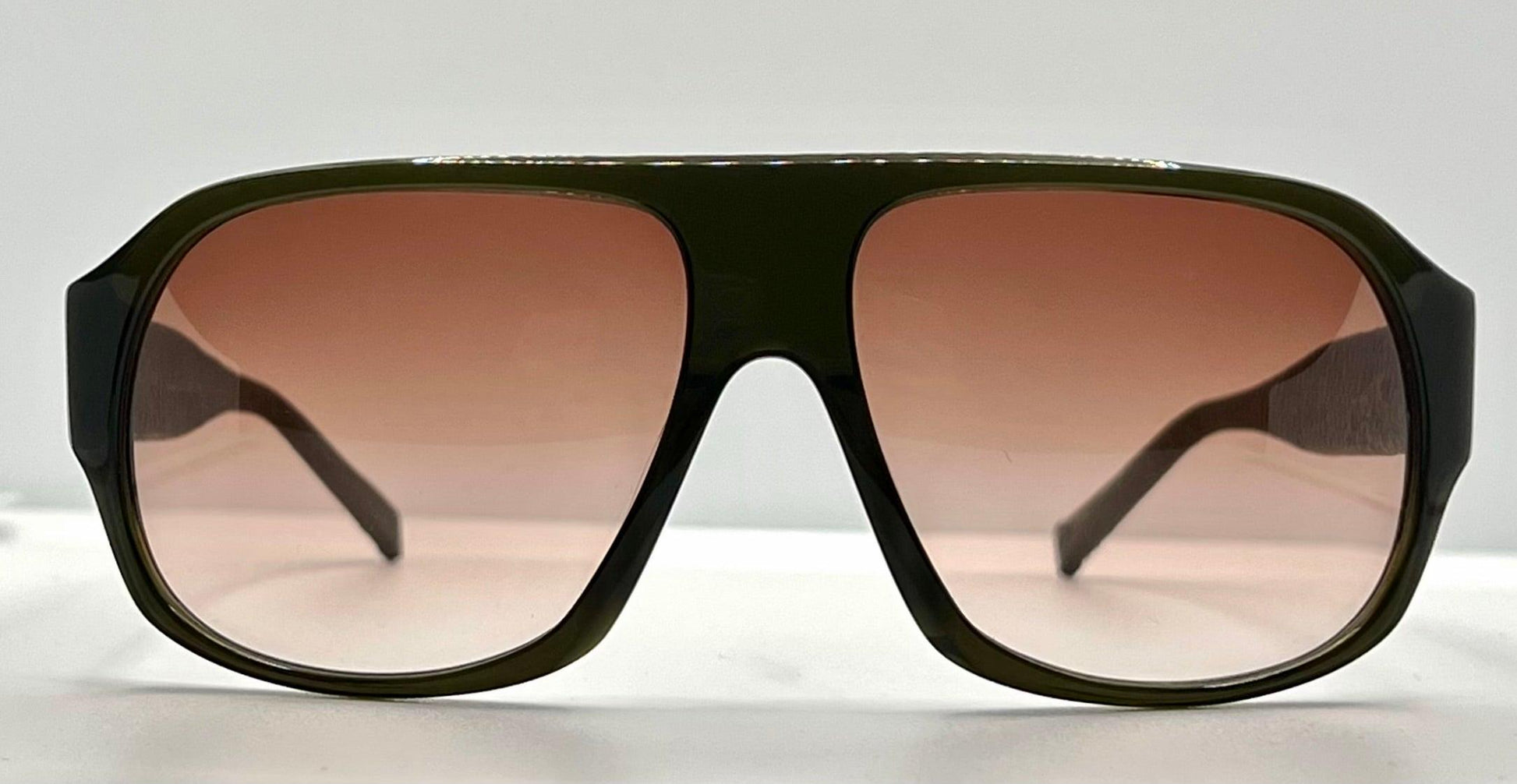 John Varvatos Leather-Wrapped Aviator Sunglasses – Olive – Gradient Lens