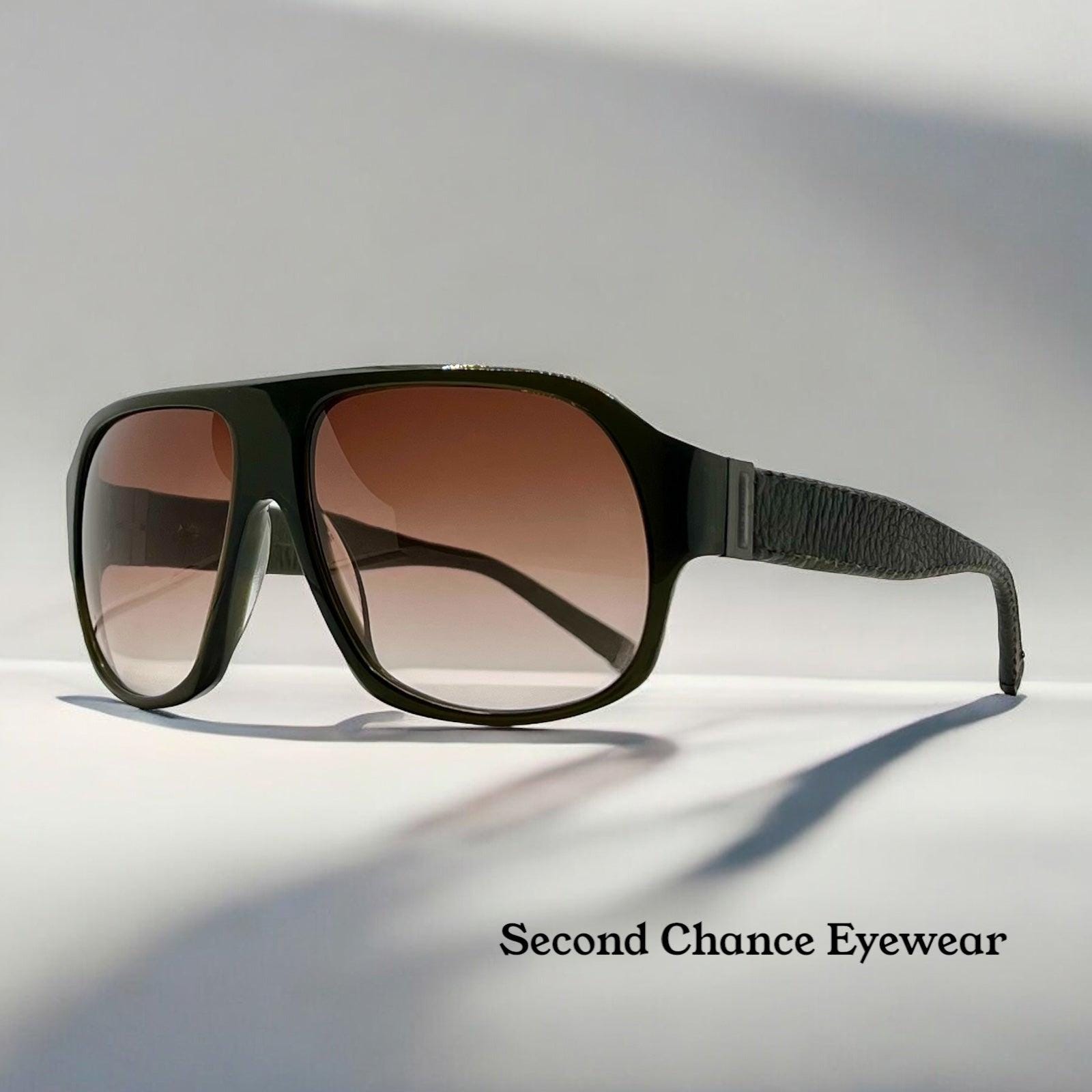 This model captures the refined, rebellious spirit John Varvatos is known for. The leather-wrapped temples were part of a limited design concept, fusing premium materials with timeless silhouettes. Rare to find unworn with the original kit.