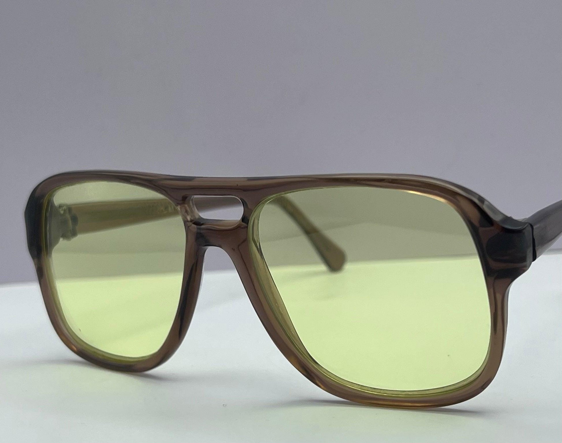 They are new/old stock (this means they are new) and have a safety rating of Z87. They have been fashioned with BRAND NEW ONE OF A KIND "BERKOS DESIGNS" SOLID YELLOW LENSES. Great for day and night