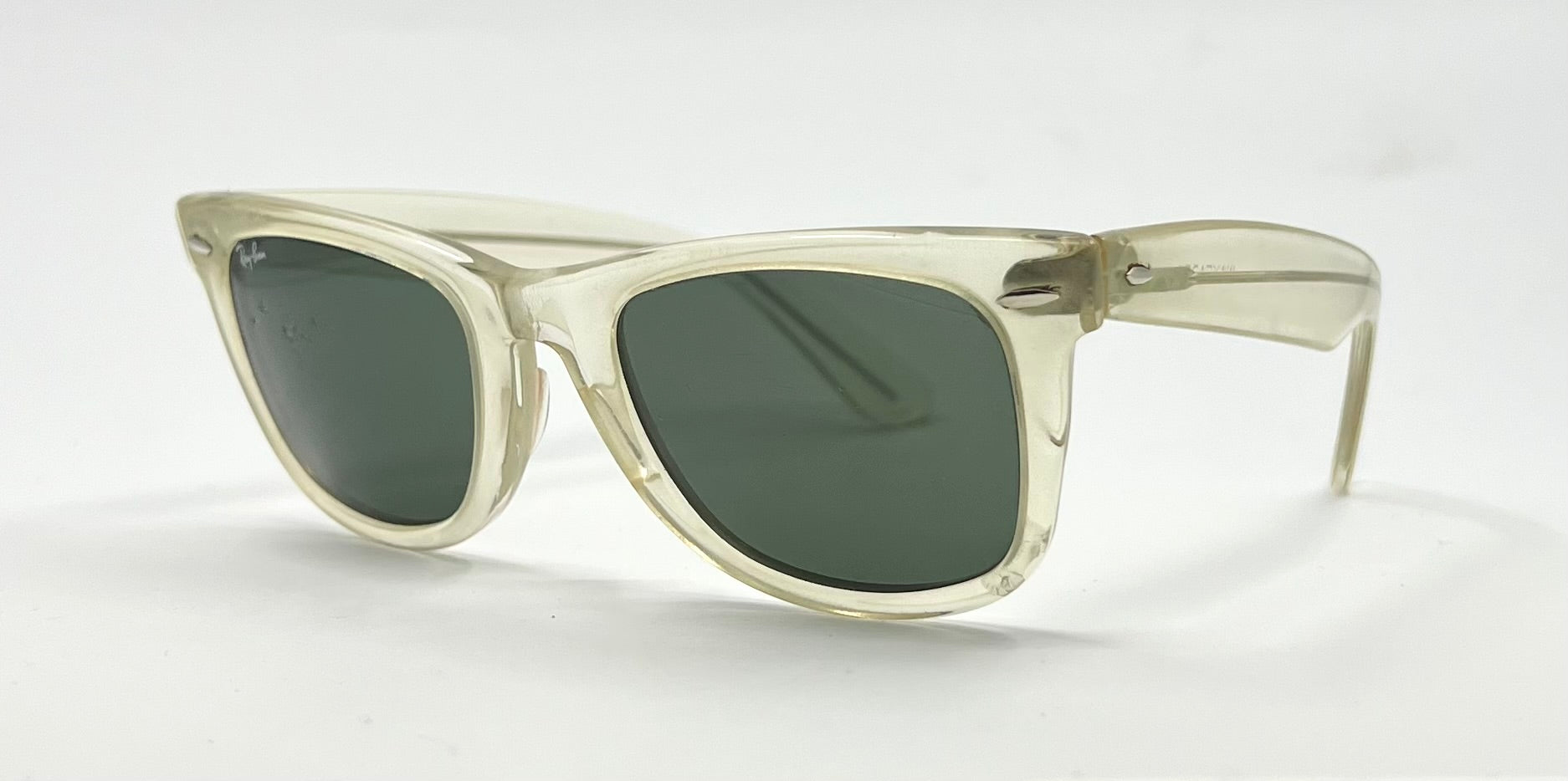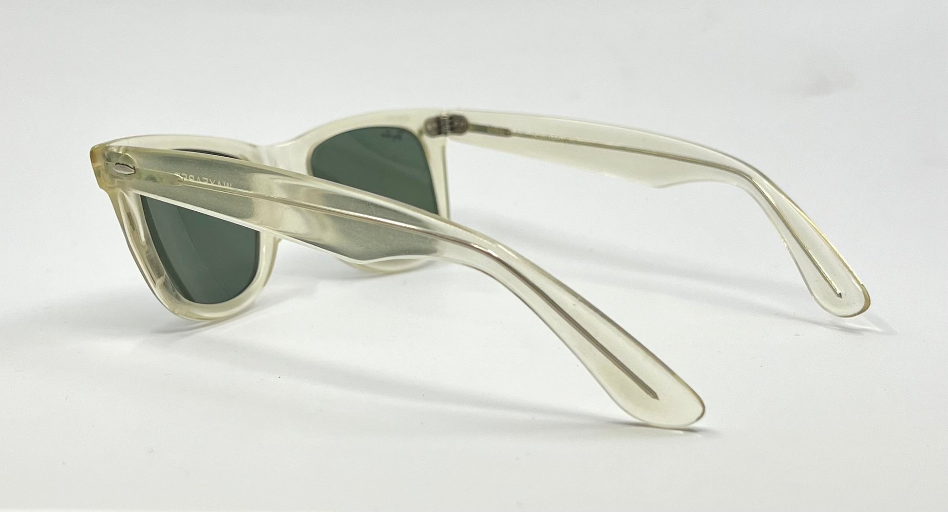 Original American-made Bausch & Lomb Ray-Ban Wayfarer 5022 in rare translucent “Crystal Clear” acetate.