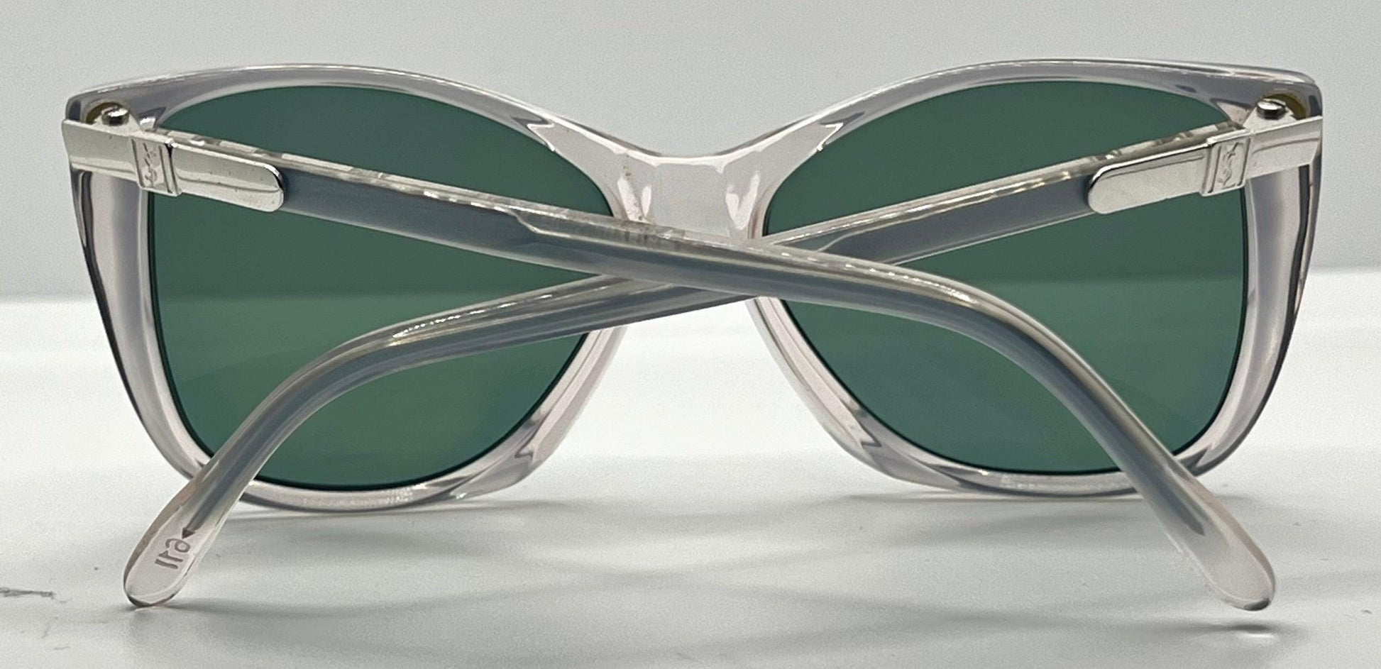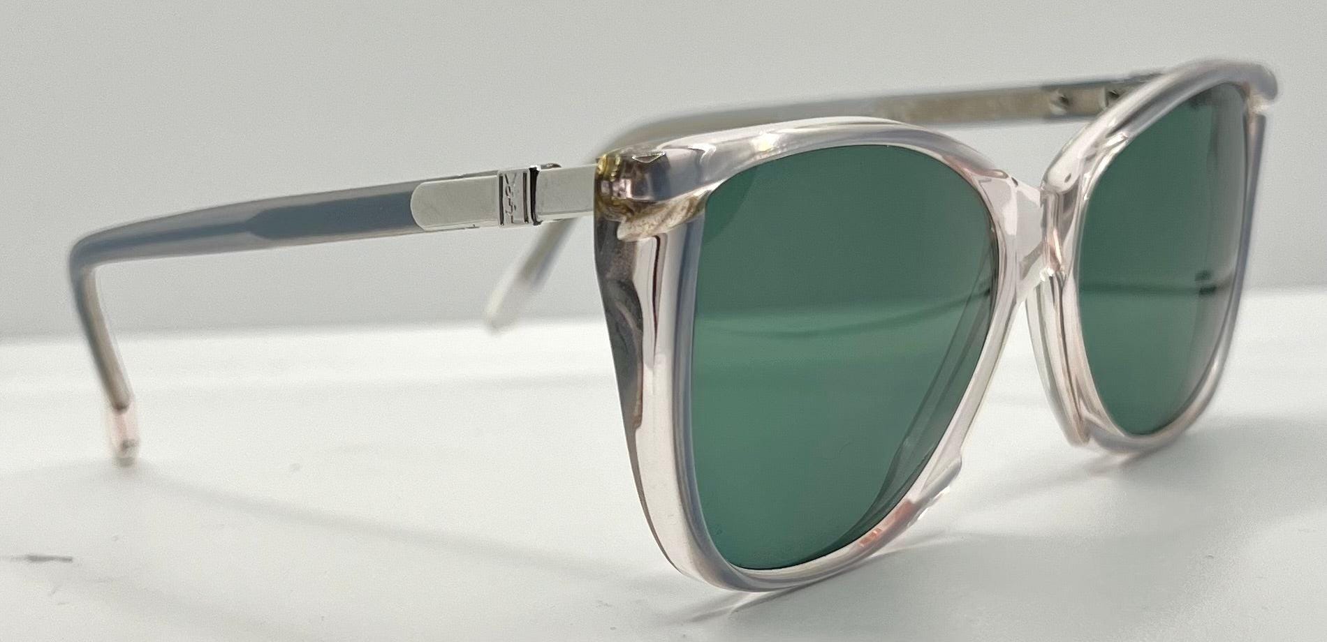 Vintage YSL SL 611 Sunglasses - Clear Grey - Custom Green Lenses - 54-14 - NOS