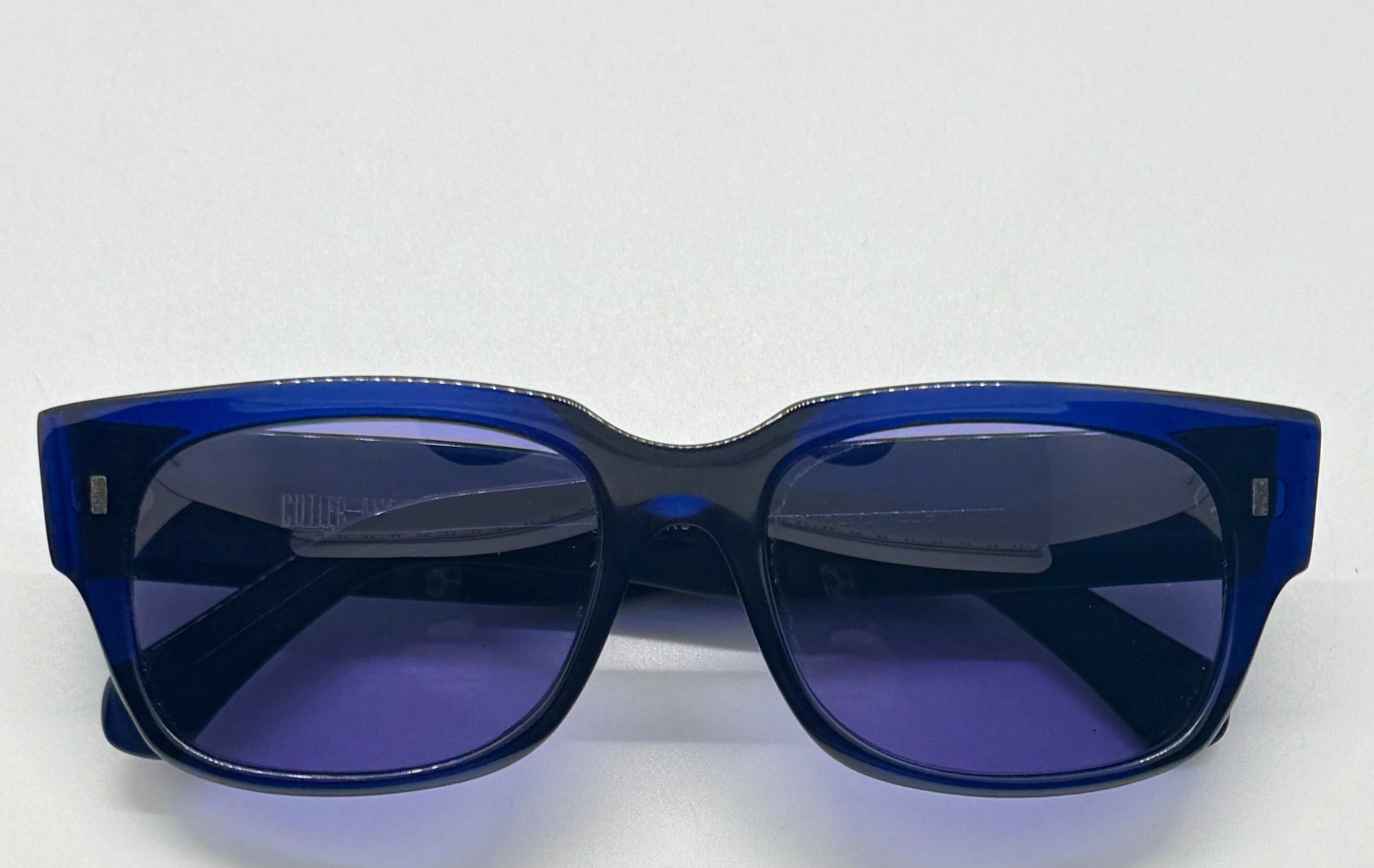 From the revered British eyewear brand Cutler and Gross, these M1016 sunglasses feature a bold, sculptural silhouette in a rare C.CNB (Cobalt Navy Blue) acetate. Handmade in Italy and finished with solidSolid Soft Plum/Purple tint custom lenses by Second Chance Customs, this pair is a true standout - contemporary, collectible, and increasingly hard to find in this striking colorway.