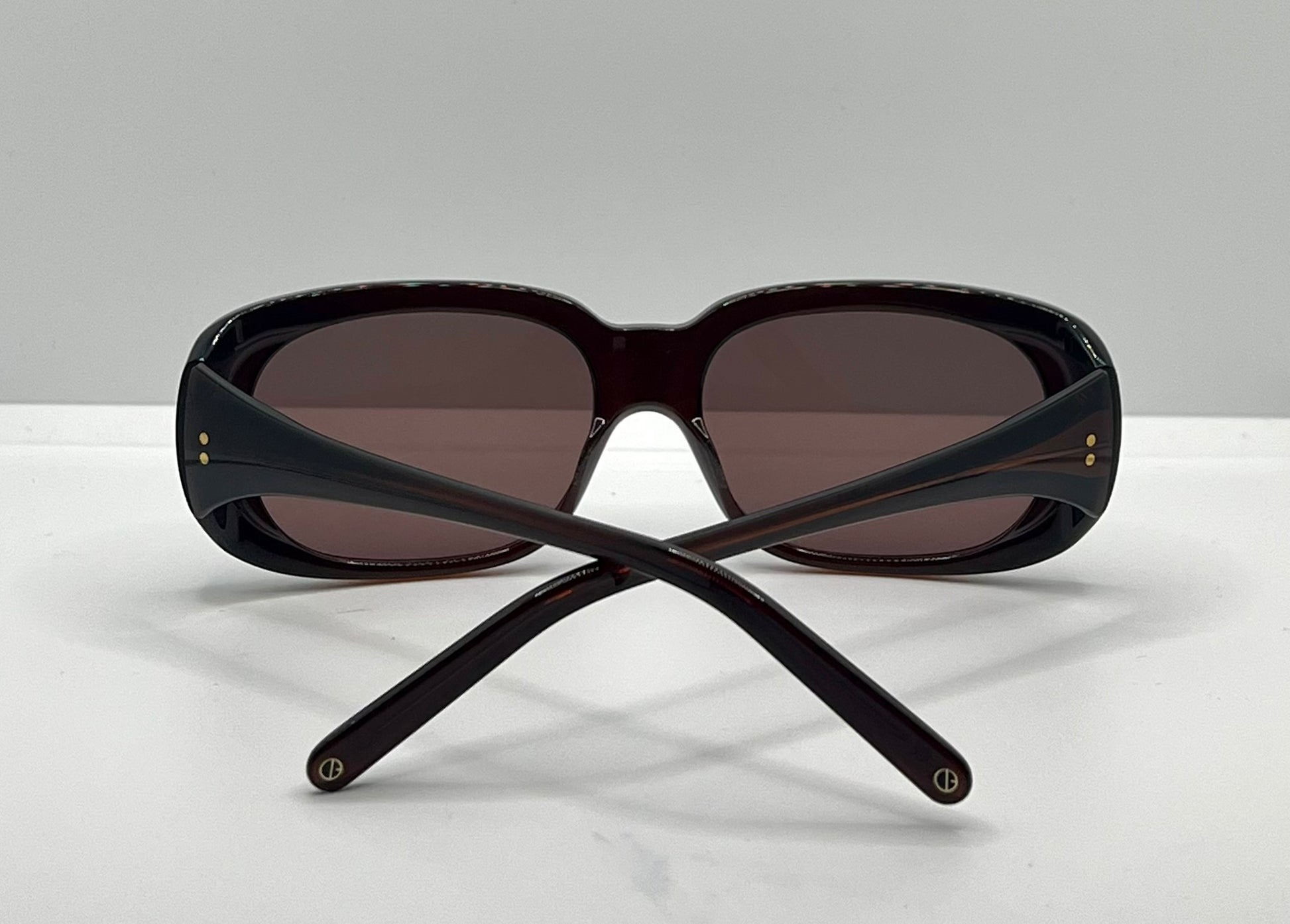 * Hardware: Gold-tone hinges and temple detailing