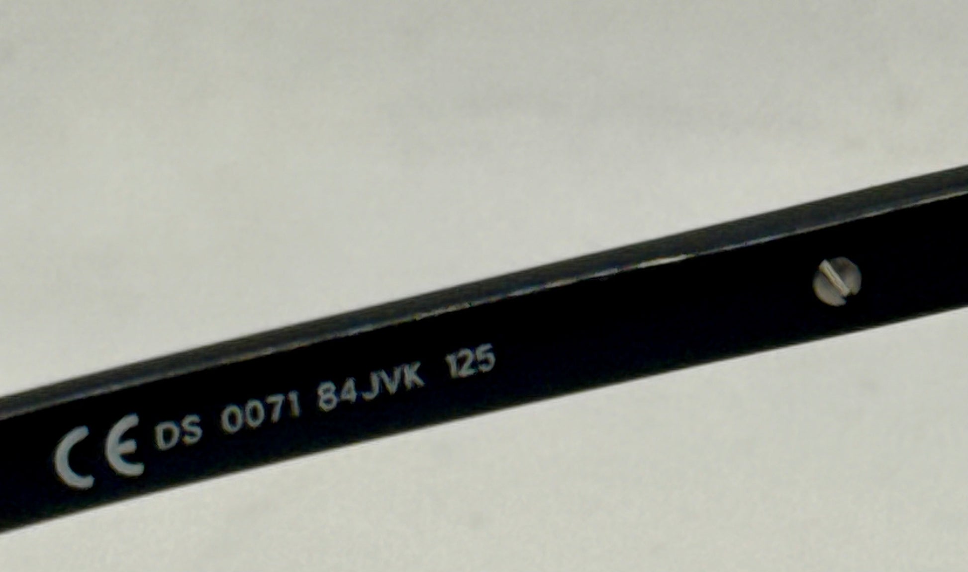- Markings: “DS 0071 84JVK 125” engraved inside right temple