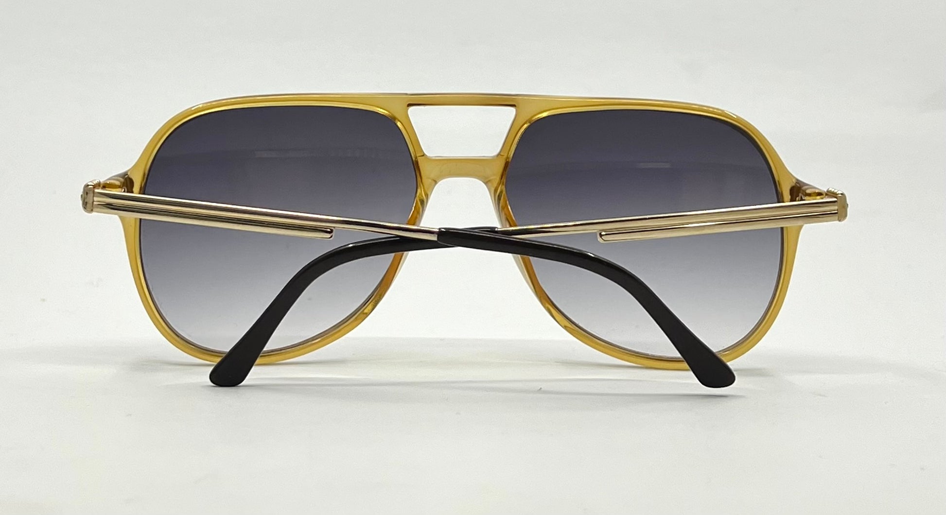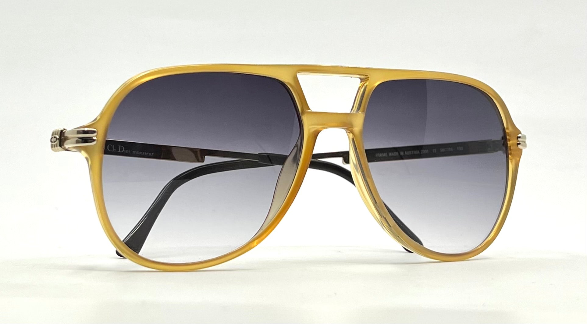 An authentic vintage Christian Dior Monsieur 2301, produced in Austria during Dior’s peak Optyl era. The frame features the signature double-bridge aviator design with a sculpted browline, golden honey Optyl front, and metal temples with black acetate tips. Classic, collectible, and unmistakably Dior.