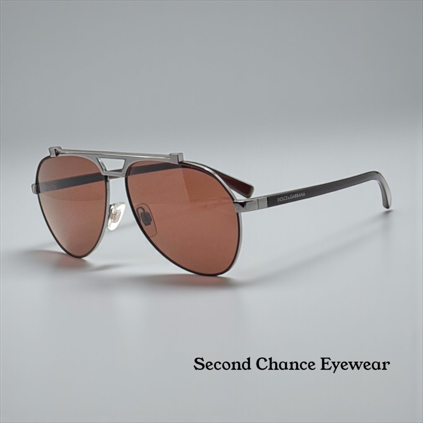 Dolce & Gabbana DG2149 1315/73 61mm – Gunmetal Aviator with Brown Lenses – Made in Italy – Deadstock/Unworn – Full Kit