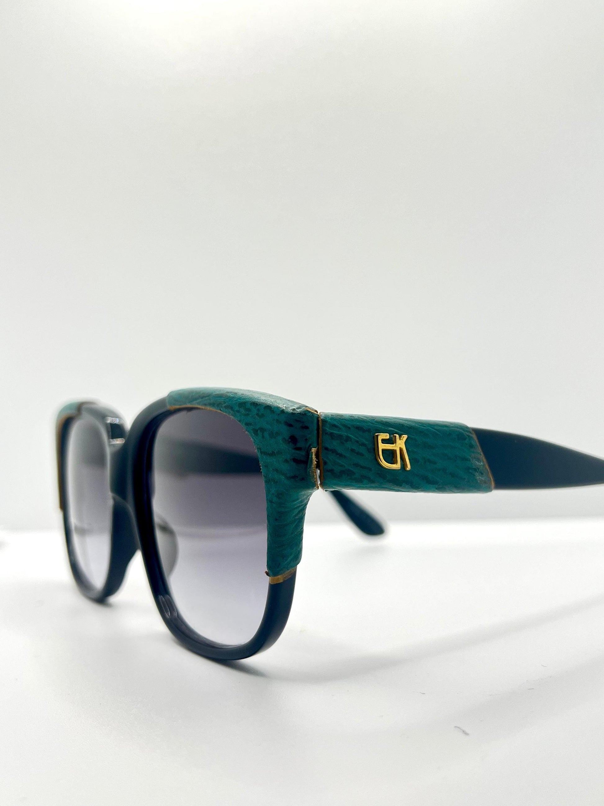 Vintage Emmanuelle Khanh 8980 Rq 16V Sunglasses – Green Ostrich Detail – France