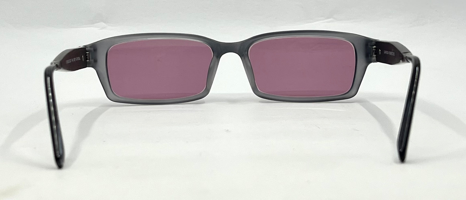An authentic Y2K-era American-made frame from Garrison Perspectives, known for bold silhouettes, layered acetate construction, and independent U.S. production. The grey crystal colorway paired with solid custom lenses gives this piece strong early-2000s character while remaining highly wearable today.