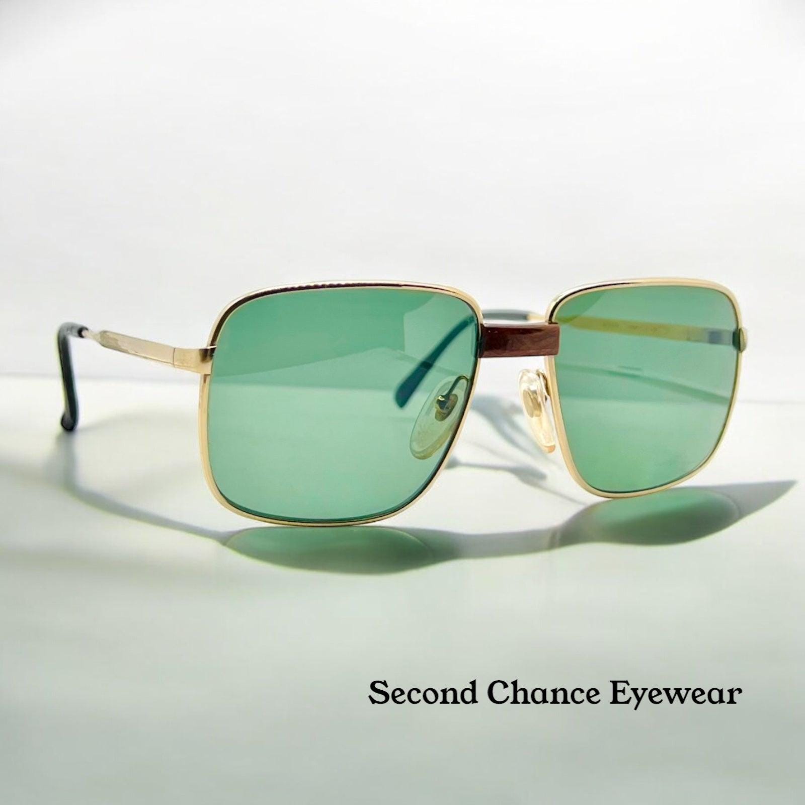 These frames are deadstock with the original green lenses still intact. Marked 20/000, indicating a gold-plated surface. Gehami was known for small production runs and distribution in high-end European boutiques, making this a difficult piece to find today.
