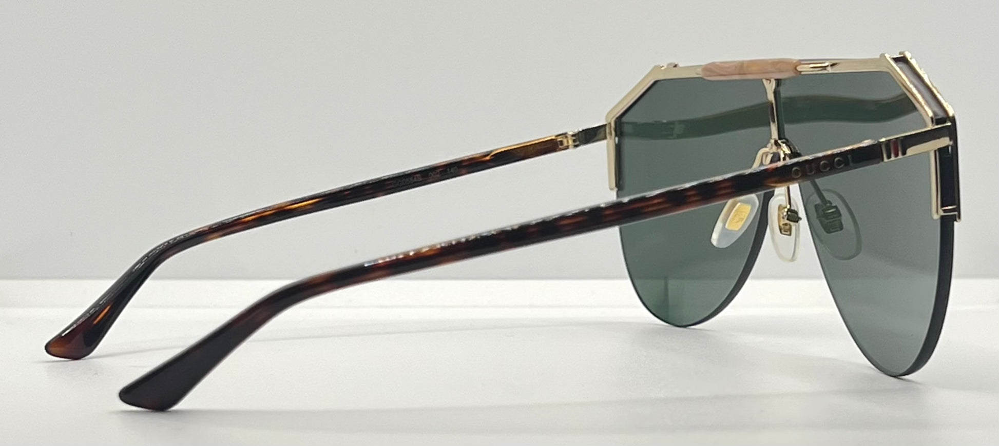 Gucci GG0584S 002 Gold Green Shield Sunglasses Tortoise Temples - Full Kit