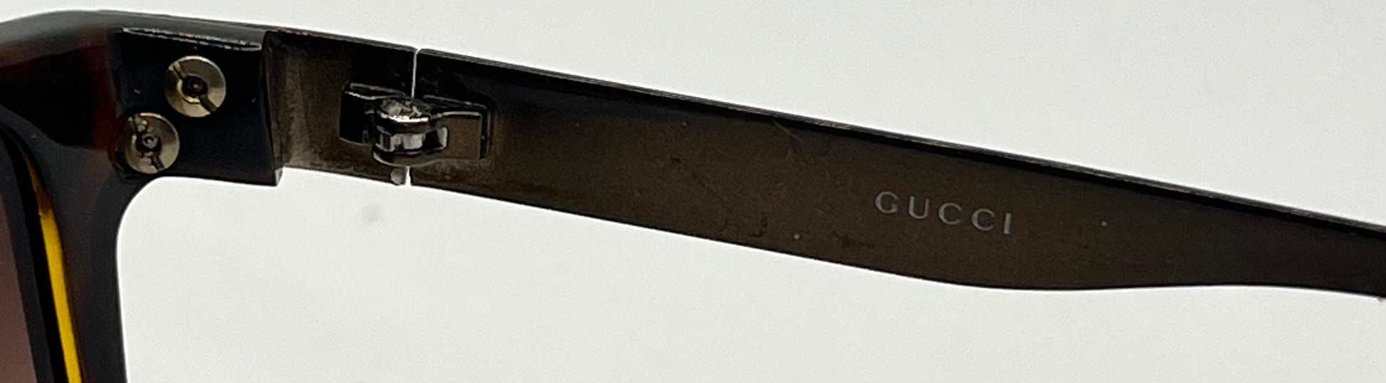 * Temples: Fixed hinge (non-spring), Gucci logo metal plaques