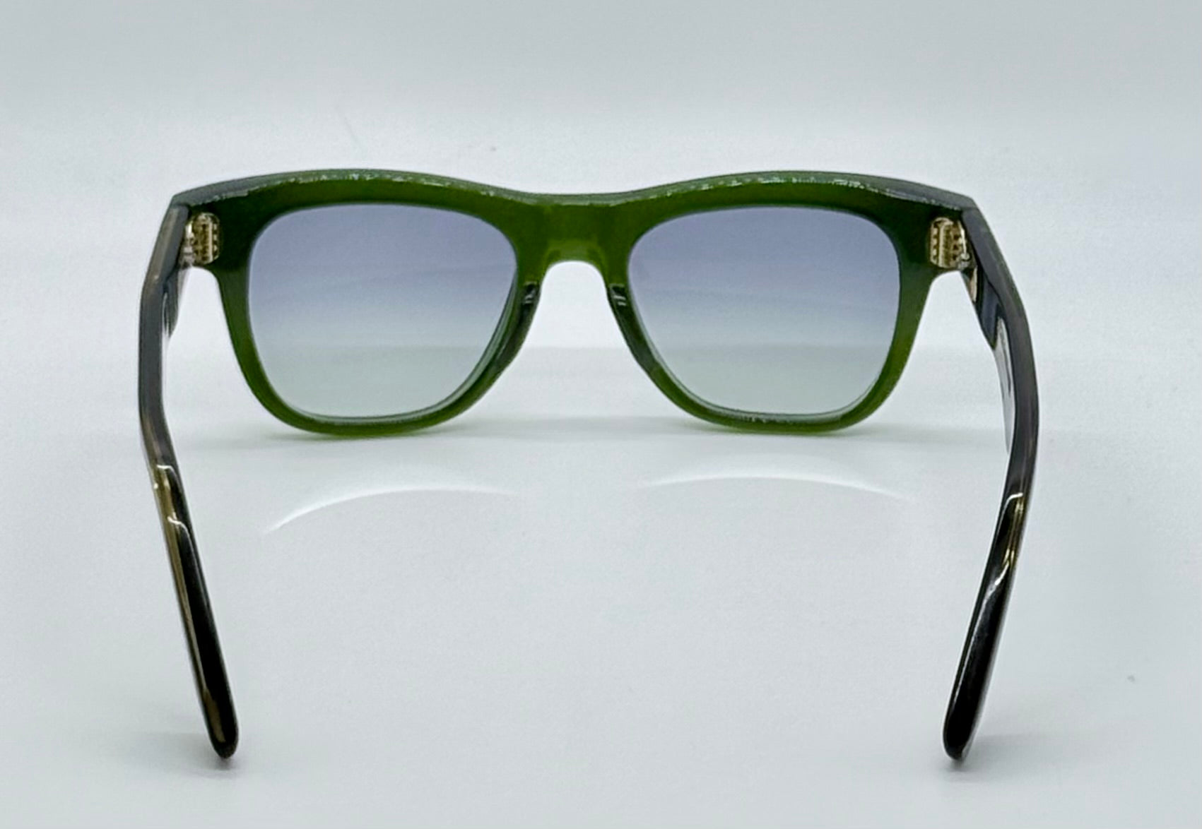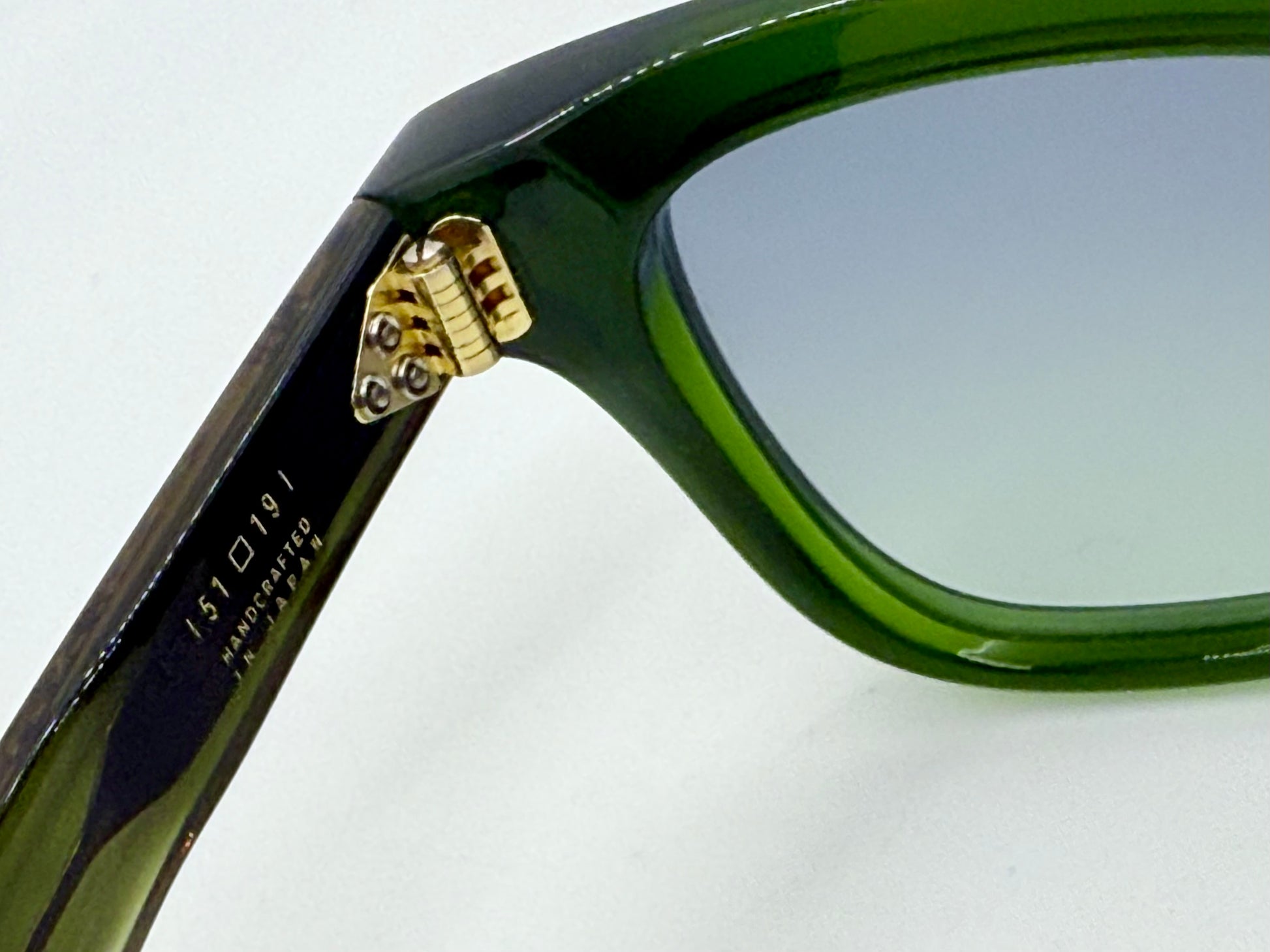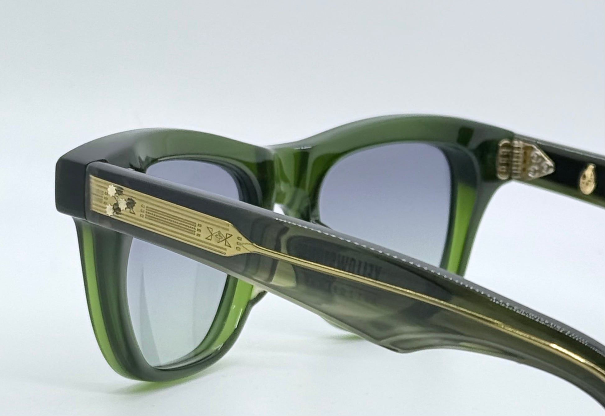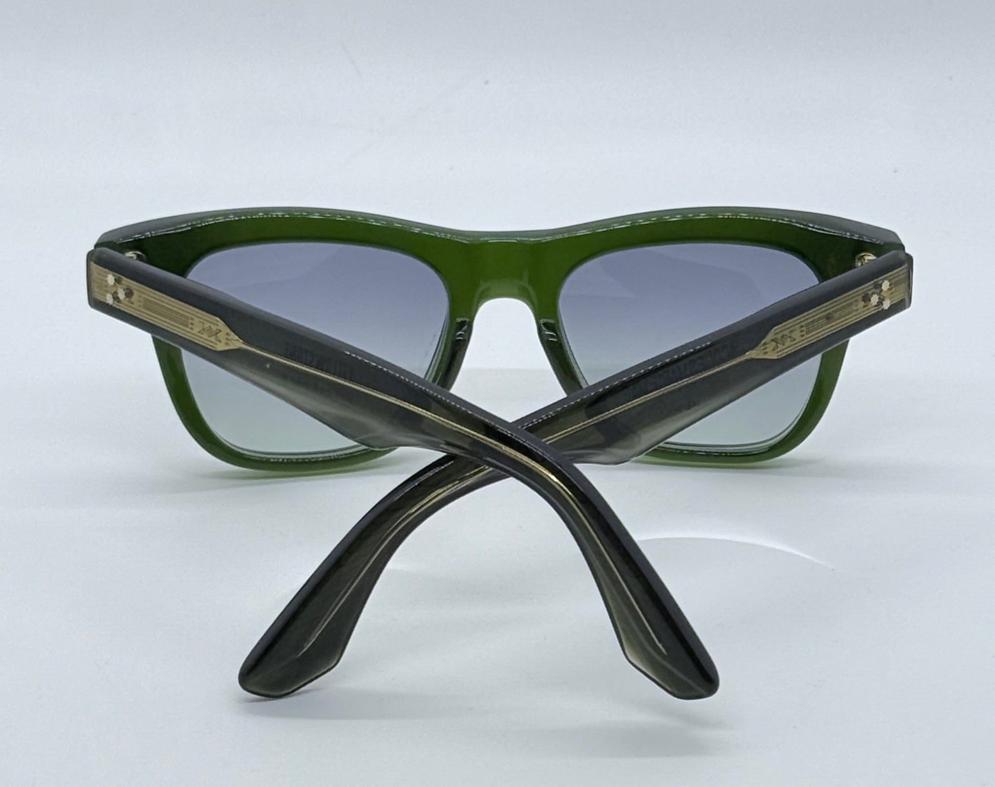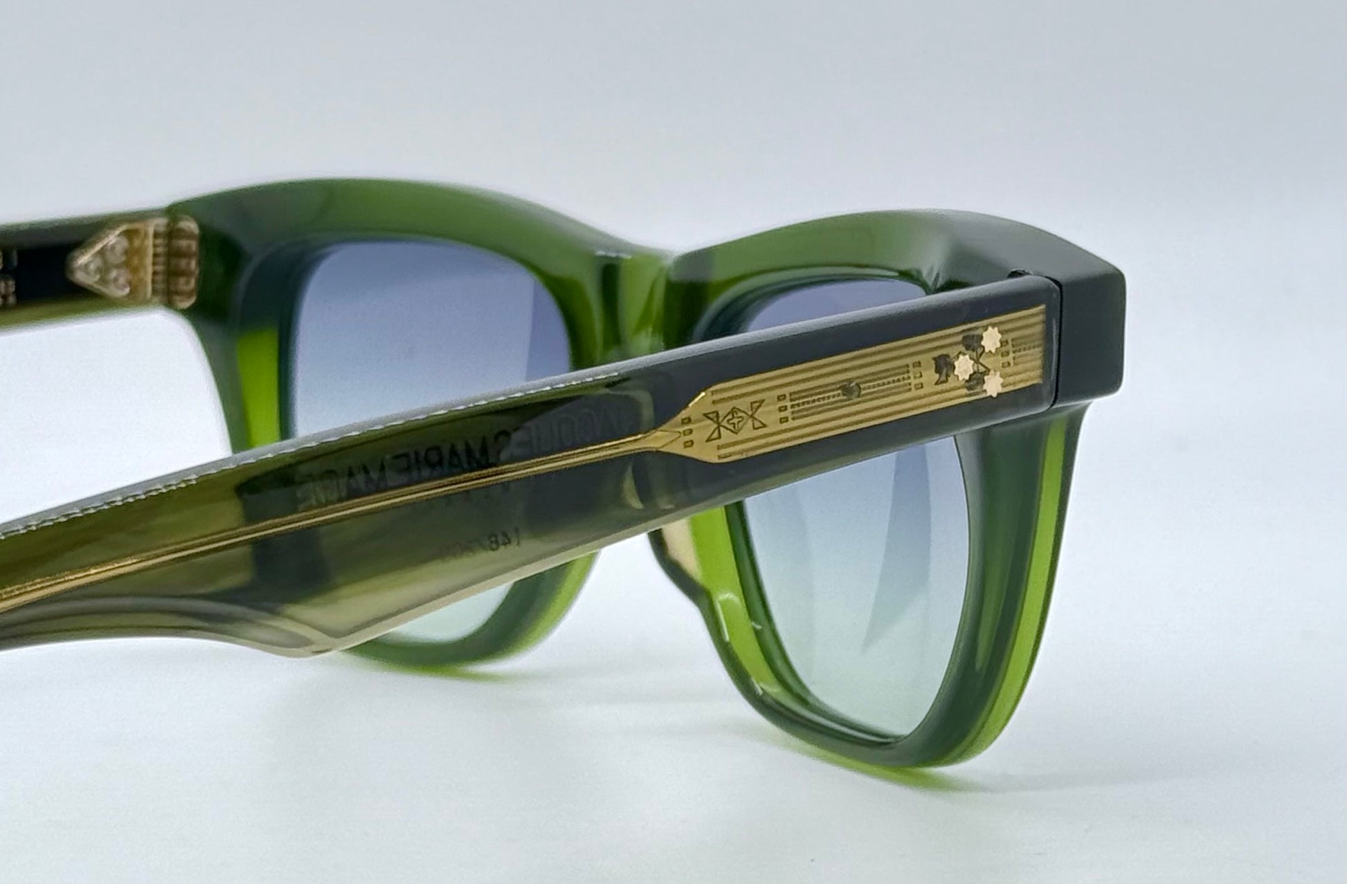 Frame Materials: 10mm Block, Polished Bottle Green, Clear Beige & Tortoise Acetate Frame, Custom Double Laminated Acetate Temples Ft. Precious Metal Hardware