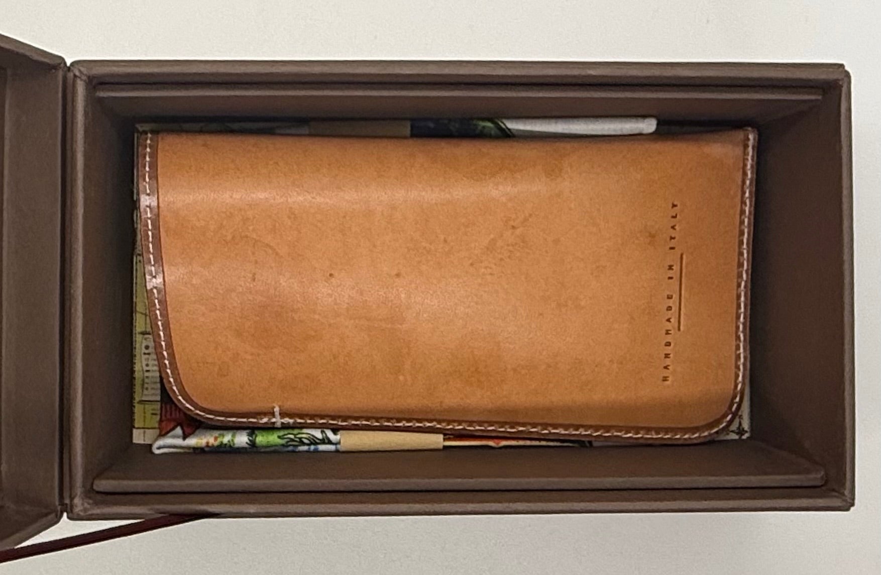 - Italian-handcrafted veg-tan leather case