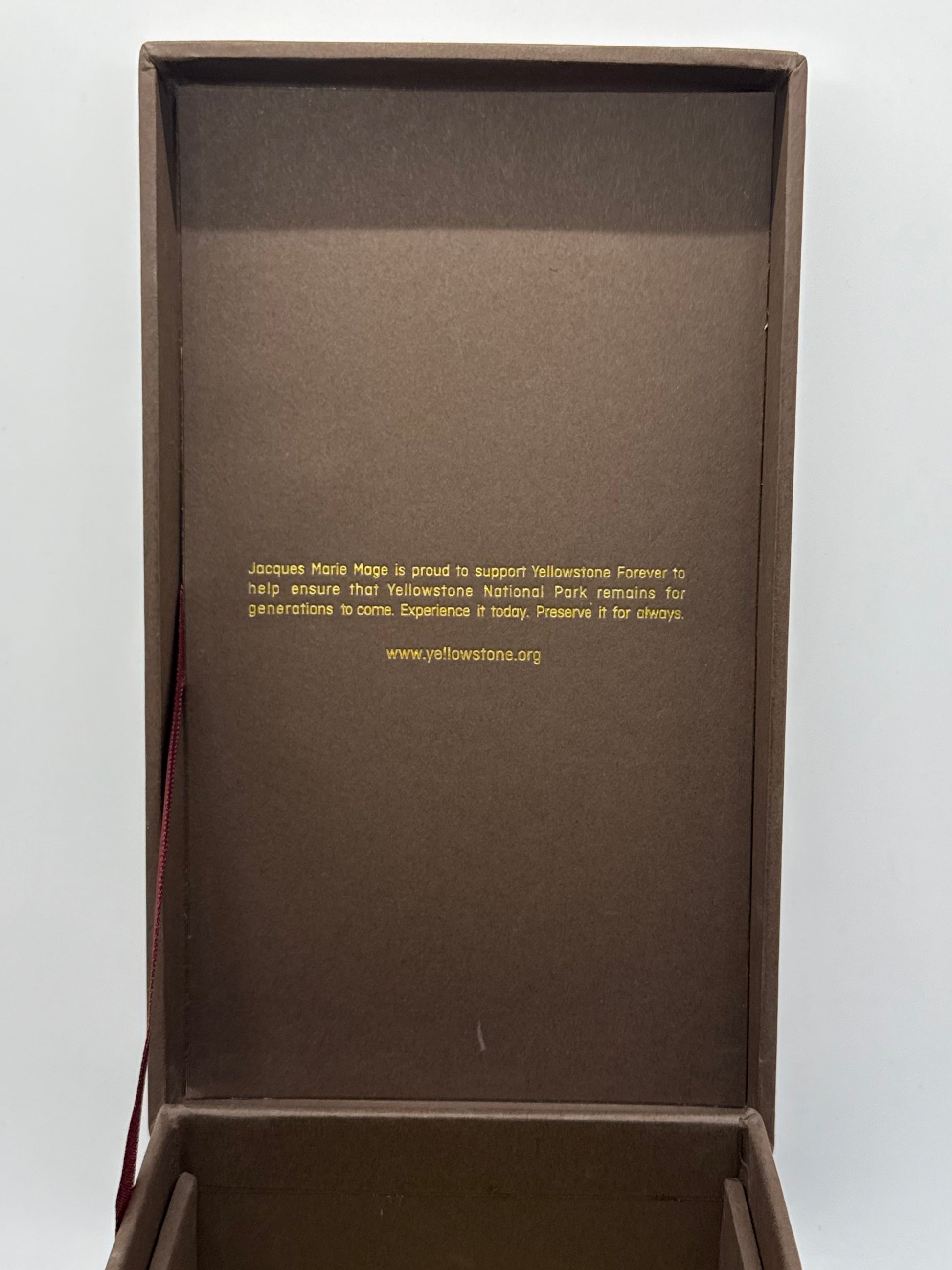 - Hard-shelled, fully recyclable box, made of recycled paper. Custom designed, brown natural color featuring Yellowstone logo made with Food Grade Soy Oil Inner box featuring the map of Yellowstone National Park