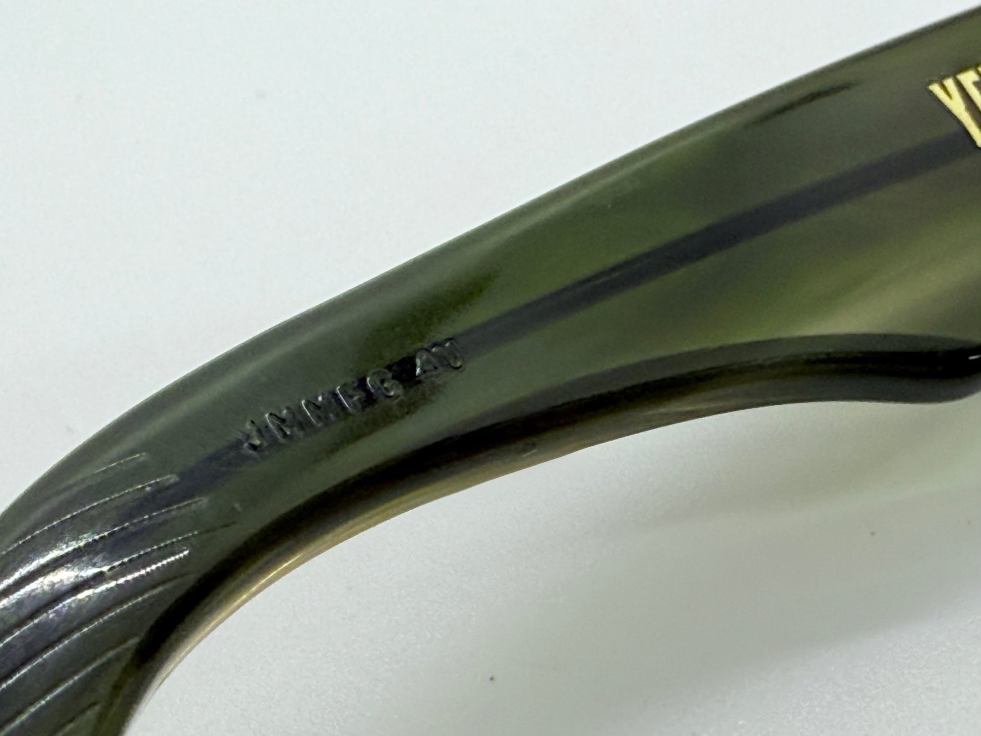 - Slight fading to interior temple lettering, not visible while wearing.