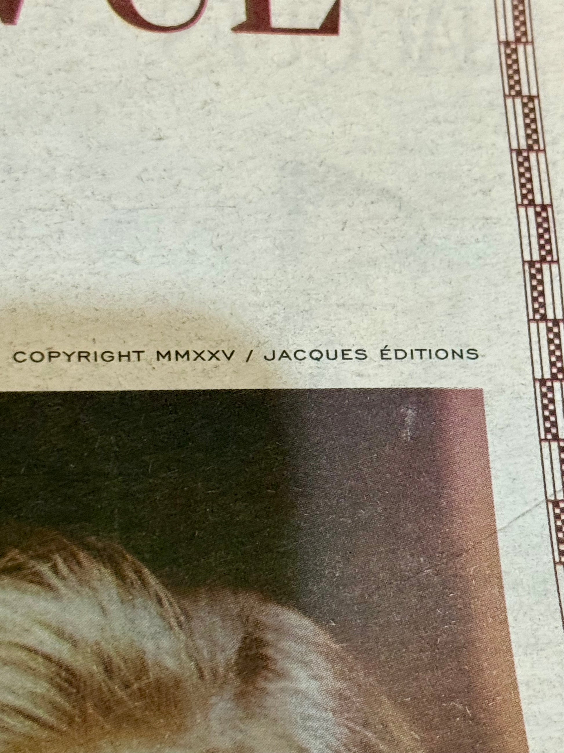 This publication has been confirmed as an original, brand-issued Jacques Marie Mage / Jacques Éditions item produced for the Fall–Winter 2025 season.