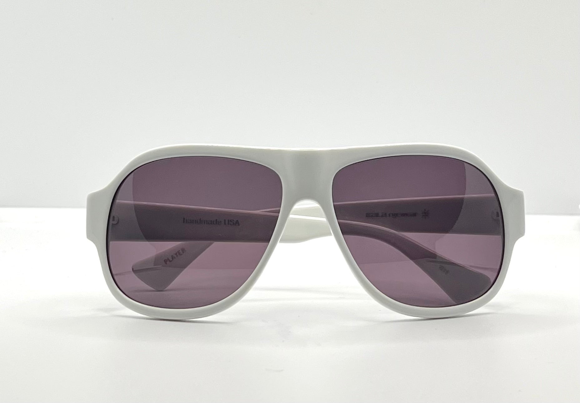 Kala Eyewear “Player” – White Acetate Frame – Dark Plum Lenses – Handmade in the USA