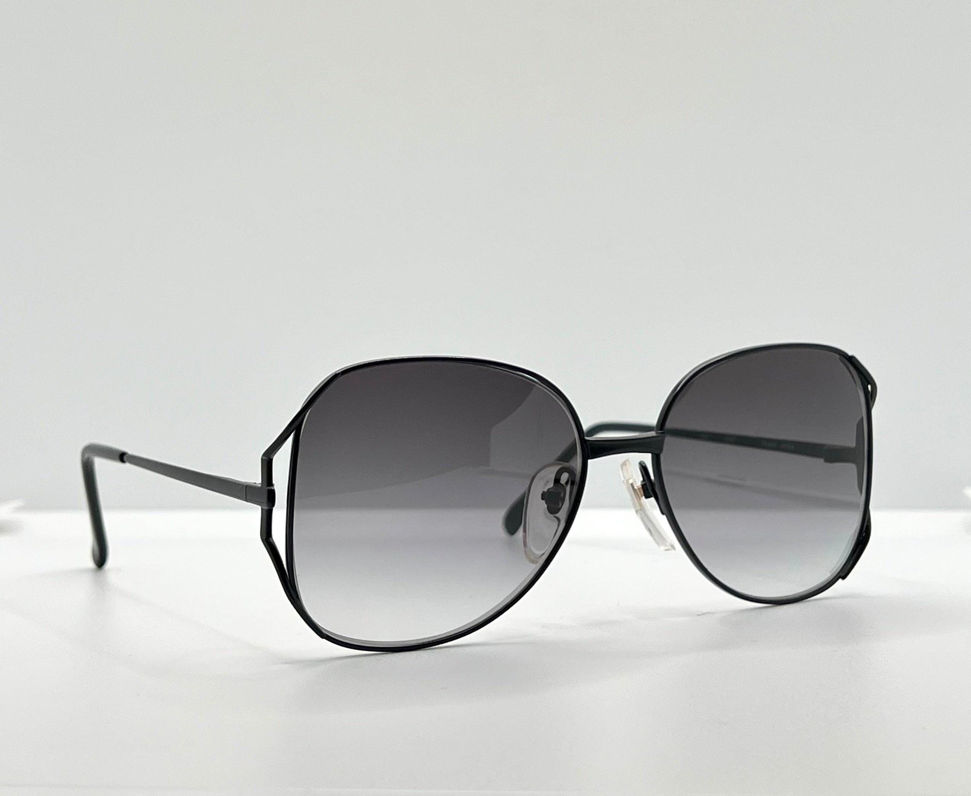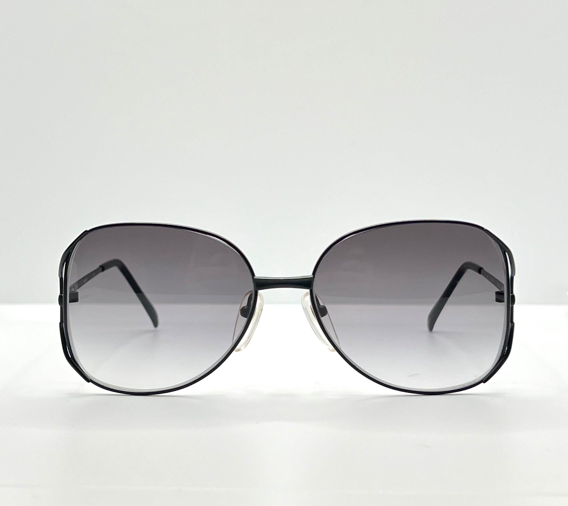 A rare and refined piece of optical history. These Nikon NK4608 sunglasses are a deadstock vintage frame, made in Japan and fitted with original gradient lenses. Featuring a geometric oversized silhouette and featherweight black metal construction, this pair exemplifies the precision and minimalist elegance that Nikon brought to eyewear before pivoting fully into optics and camera gear.