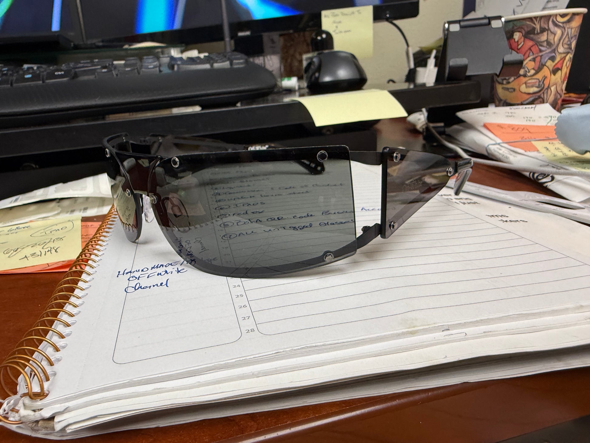 A bold, futuristic statement from the mind of the late visionary Virgil Abloh. These Off-White™ shield sunglasses were part of one of his final eyewear collections, released in limited quantities and no longer in production. A true collector’s item.