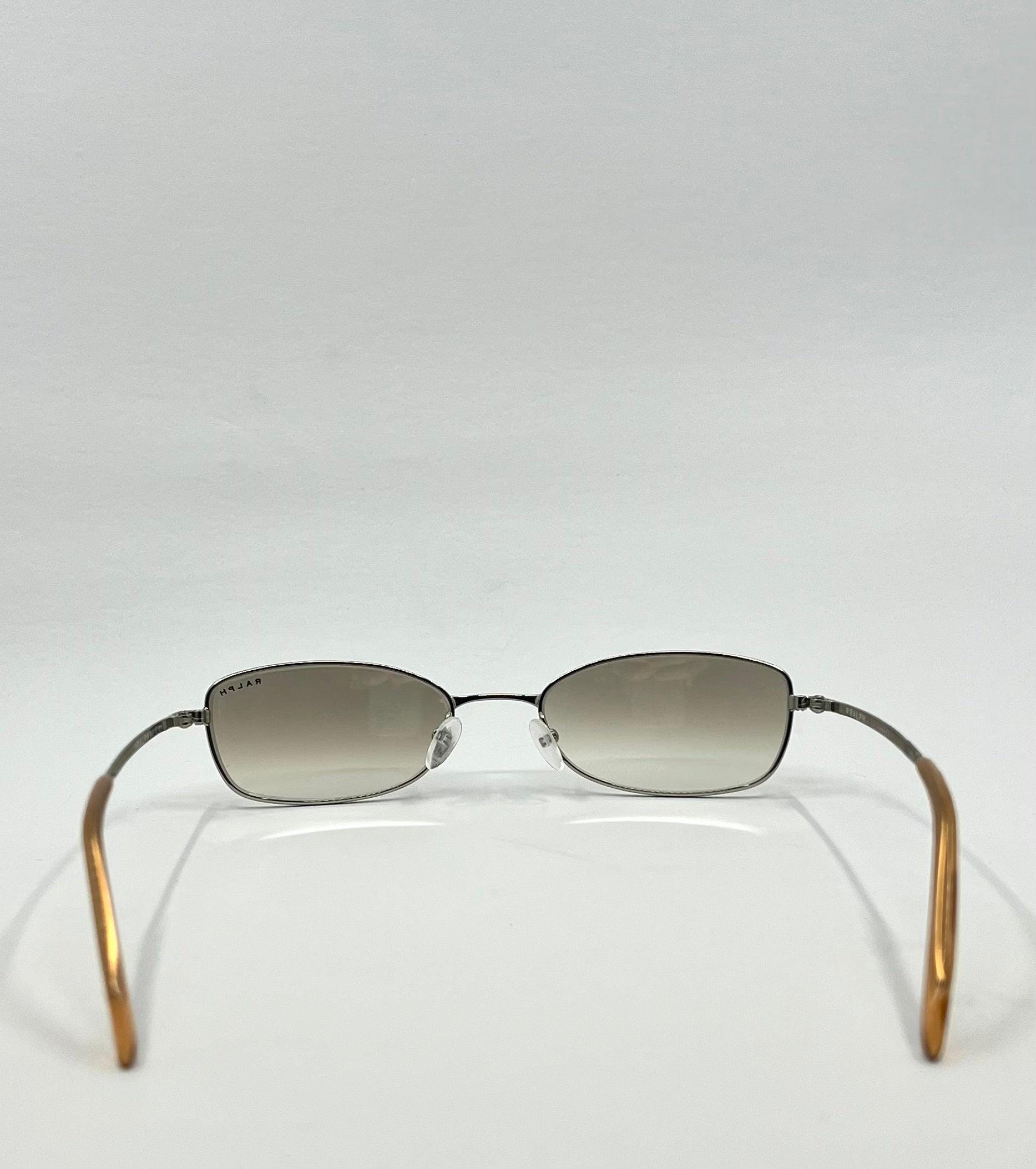 * Style: Minimalist Y2K rectangular wraparound, slim metal construction, Ralph logo etched on lens