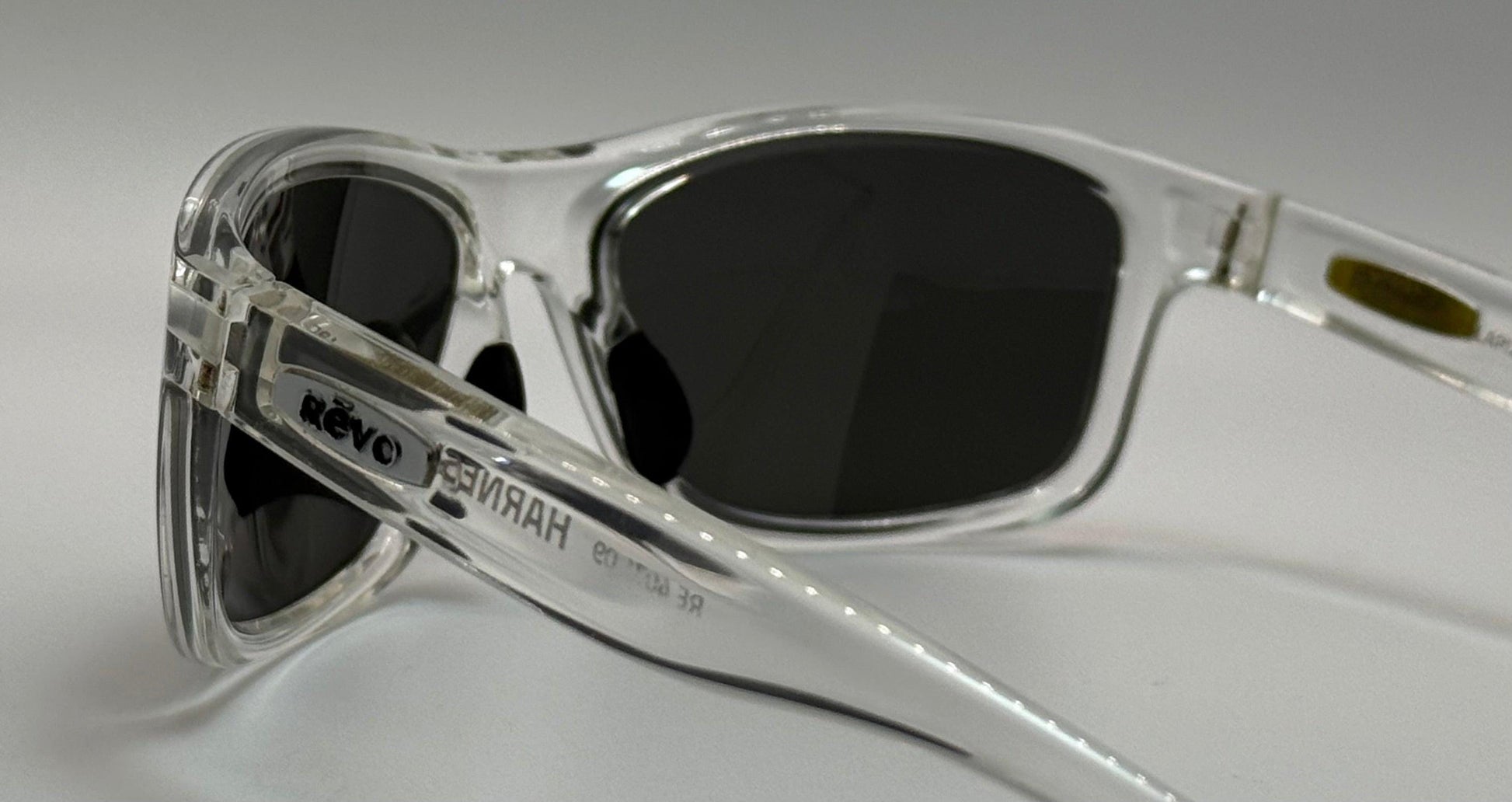 Vintage Revo Harness Polarized Sunglasses – Crystal Clear Frame | Brand New Dark Grey Polarized Lenses