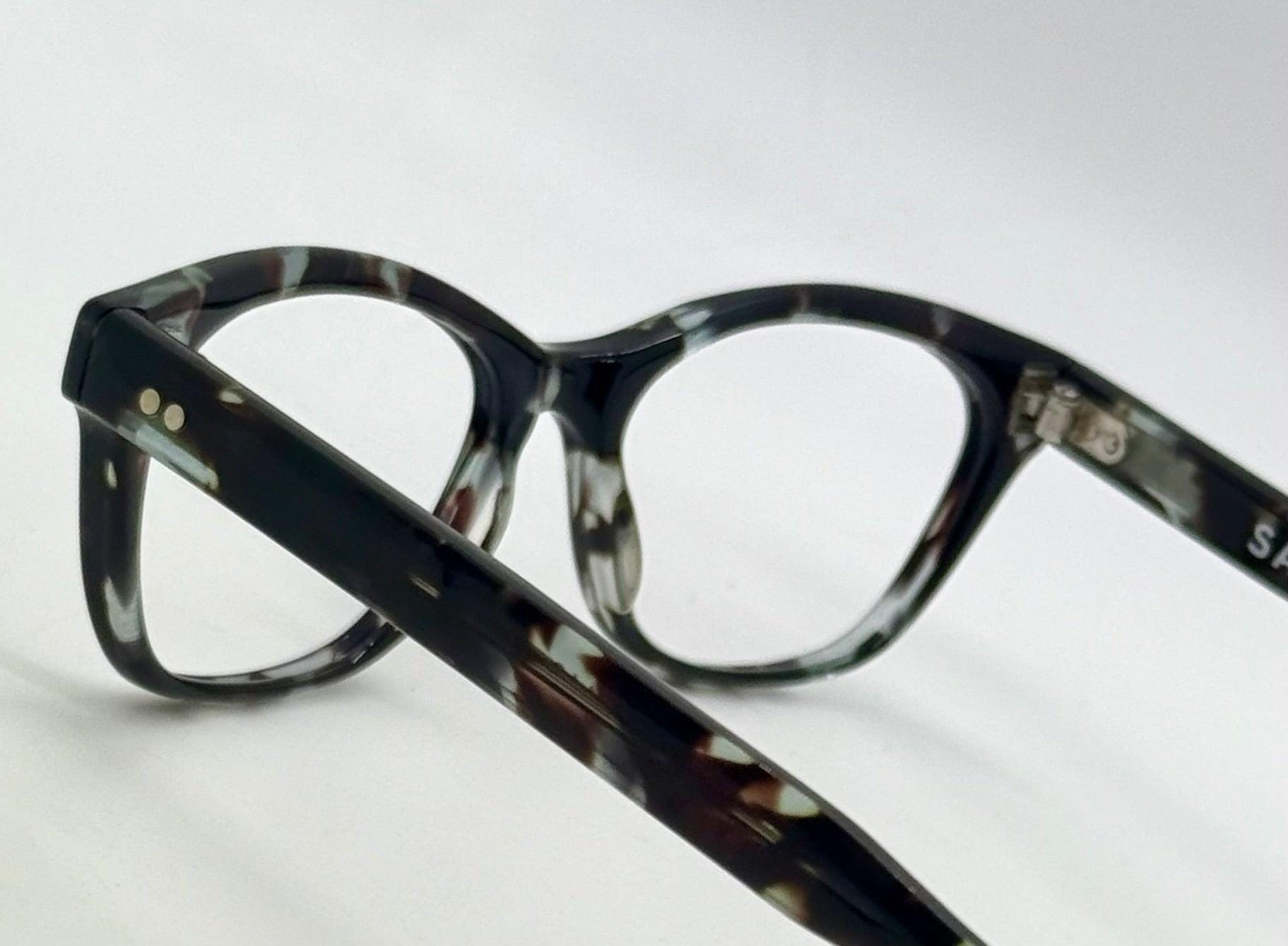 A refined and timeless design from SALT. Optics, the TISH VBT blends sophistication and craftsmanship with a bold feminine silhouette. This beautiful cat-eye frame features a rich variegated acetate in deep brown, cream, and translucent hues.