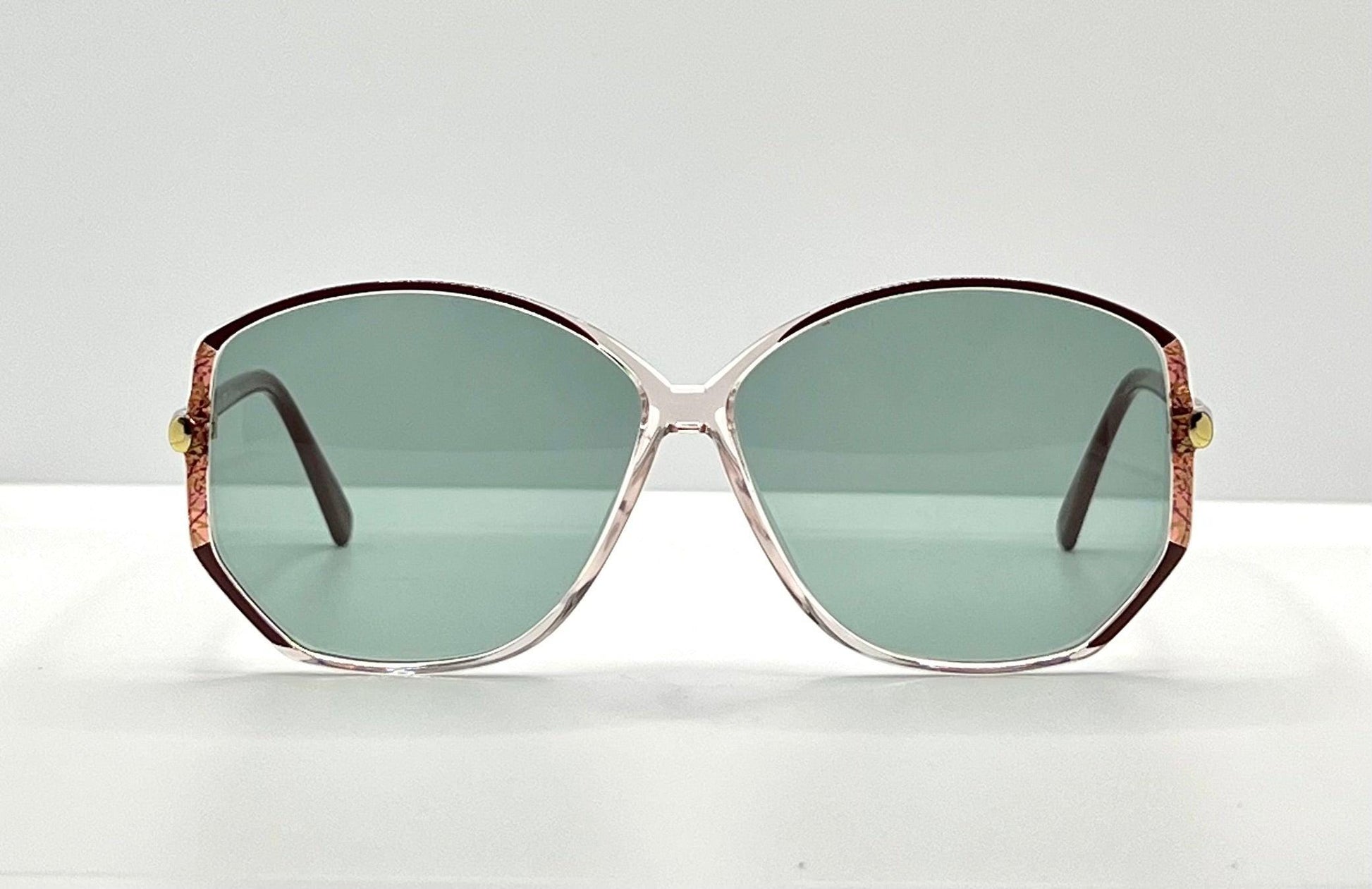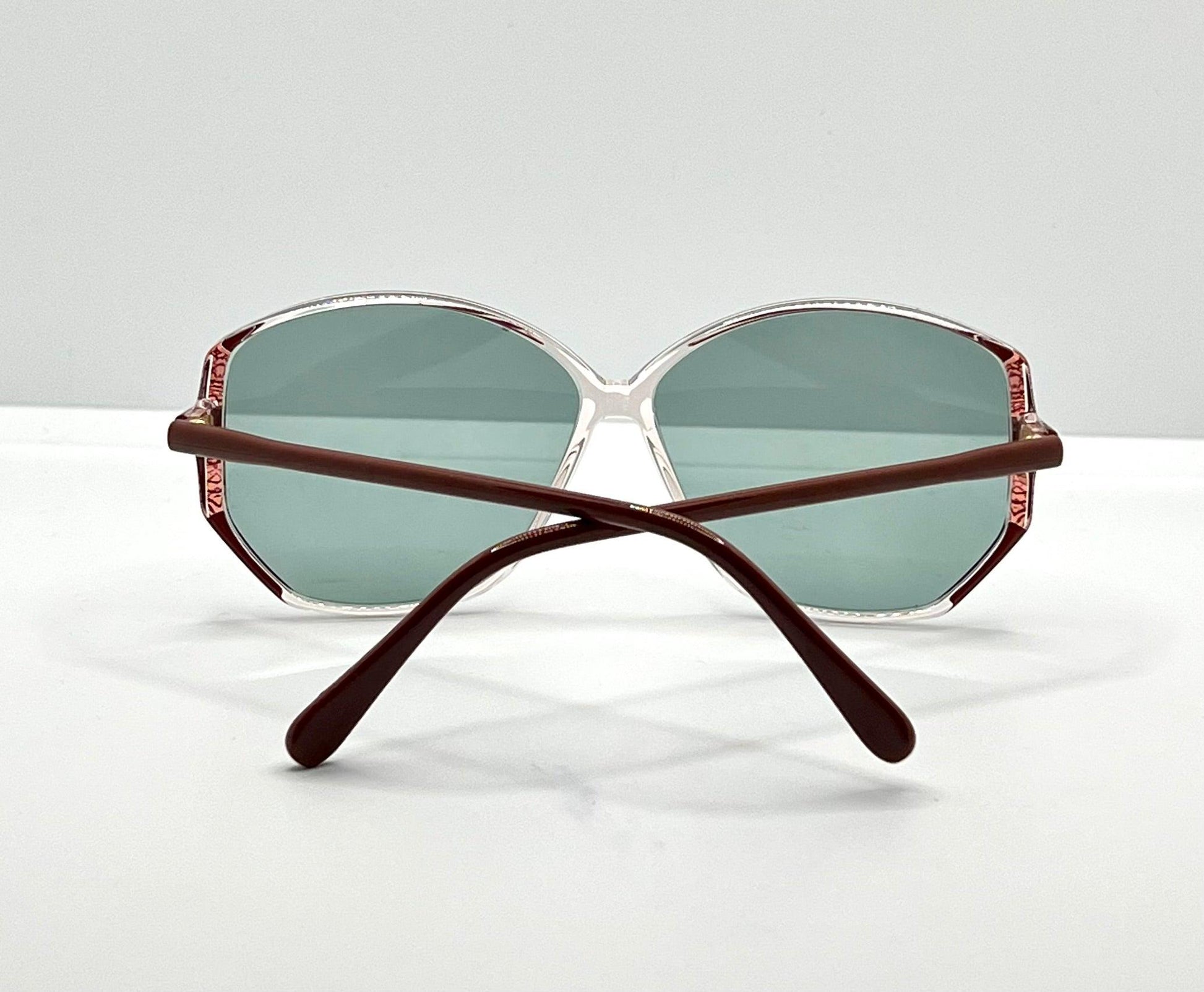 A rare and striking Deadstock find from Silhouette, Austria-this oversized geometric frame is crafted in their proprietary SPX material, known for its featherlight feel and resilience. The layered design features a translucent rose base accented with deep red outer rims and shimmering gold-red foil patterning at the edges. Elegant gold hardware and sculpted hinges complete the frame's distinctly late-1980s Euro-luxury appeal.