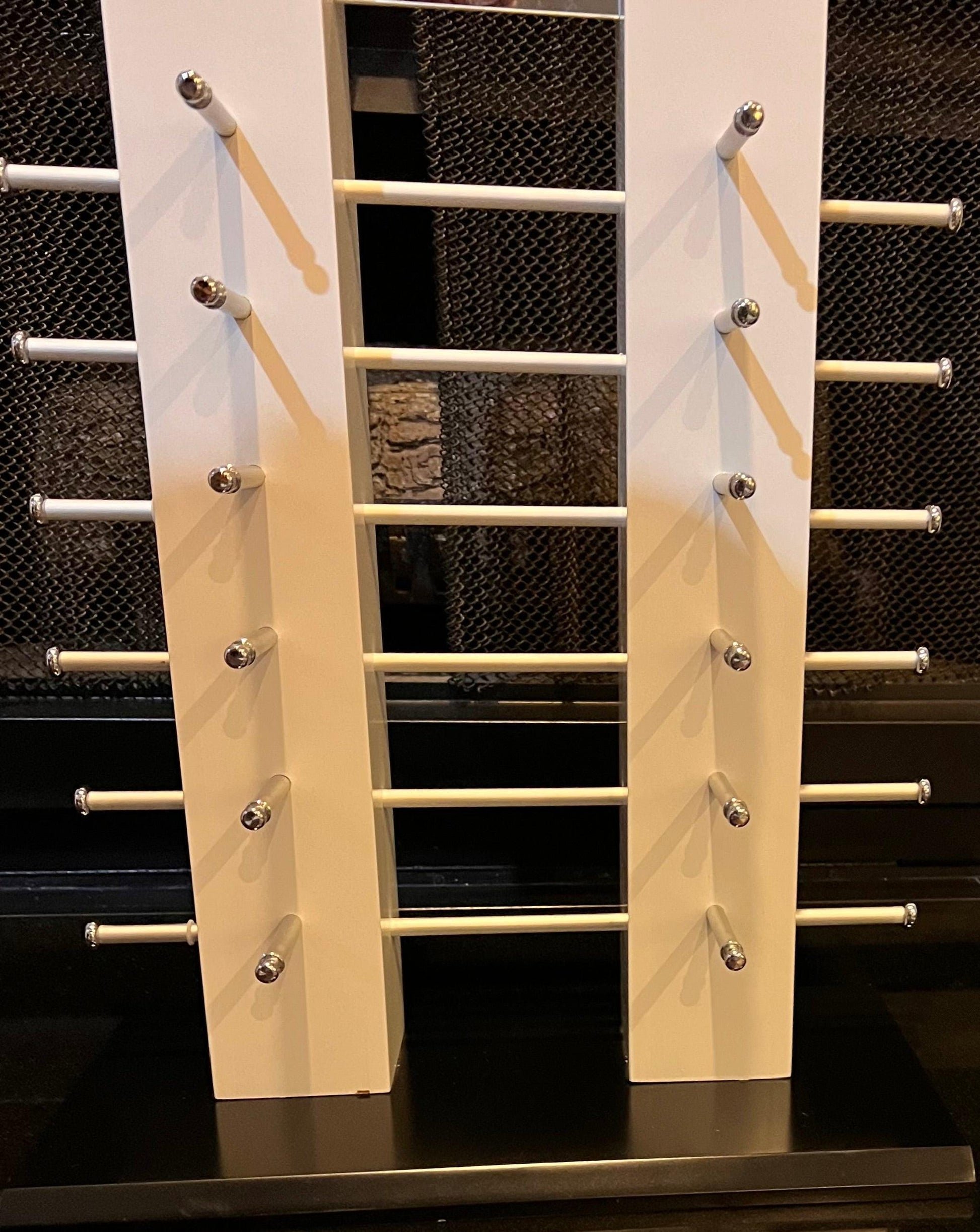 Showcase your eyewear collection in style with this sleek and branded Stacy Adams Est. 1875 countertop display. Featuring 24 pegs and a branded mirrored center, this display is perfect for any retail or personal use. Display your favorite sunglasses or eyeglasses and let this piece become a focal point in any room.