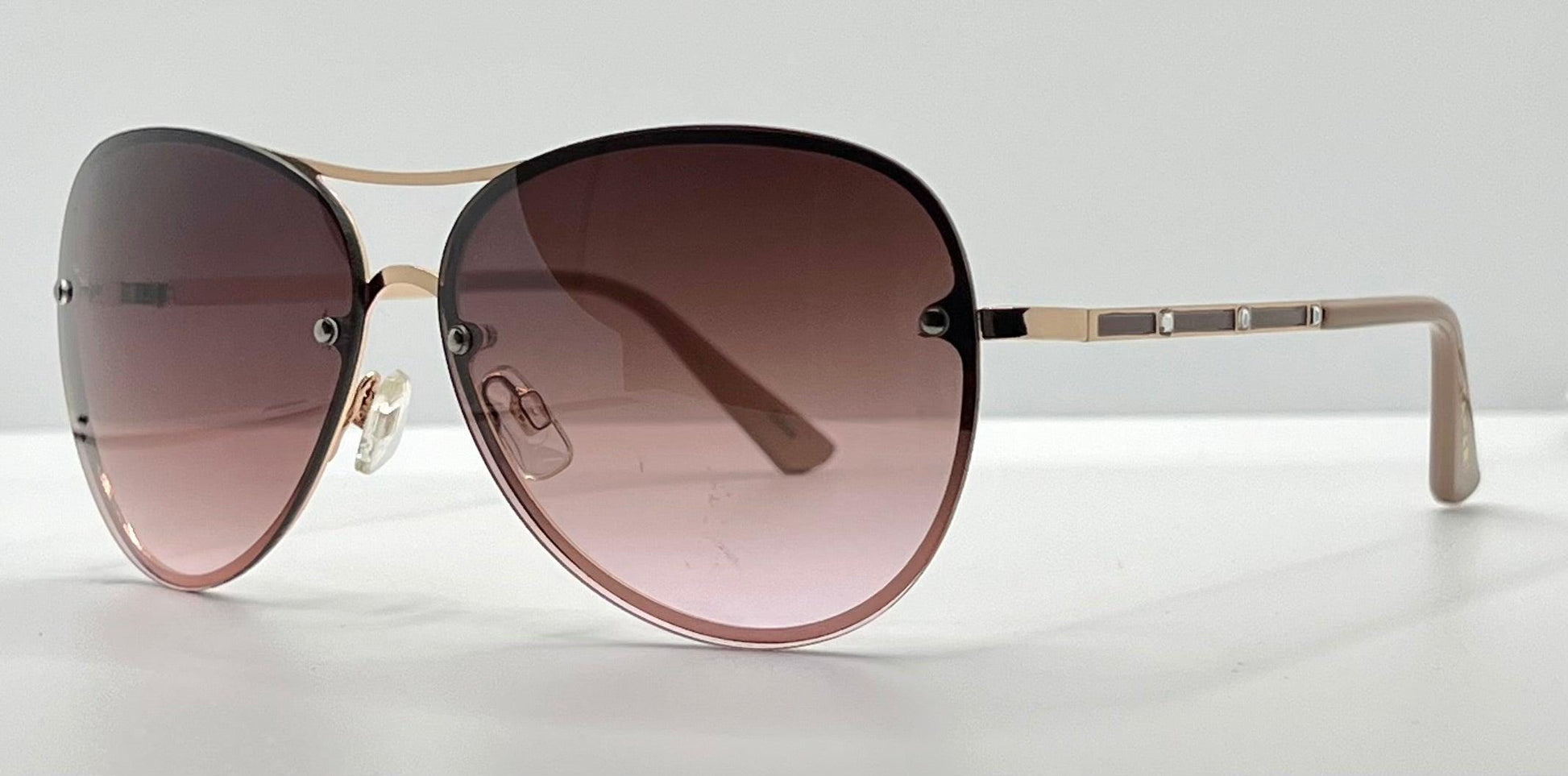 A modern, soft aviator silhouette blending luxury with everyday wearability. The rimless design offers minimal visual weight, while the warm gold finish and blush-toned temple accents provide a refined, feminine edge. Lightweight and flattering, ideal for all-day wear, travel, or light styling.