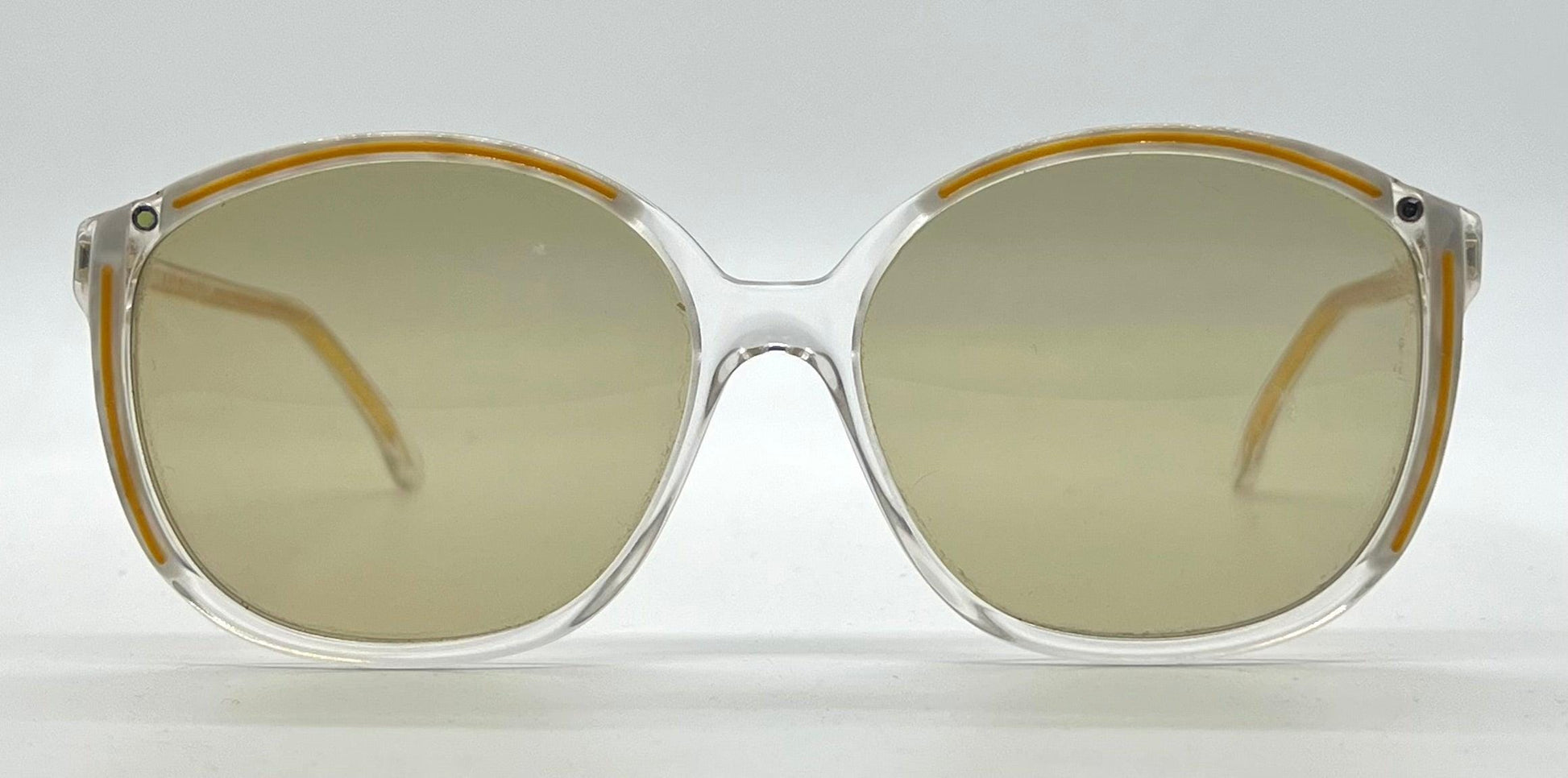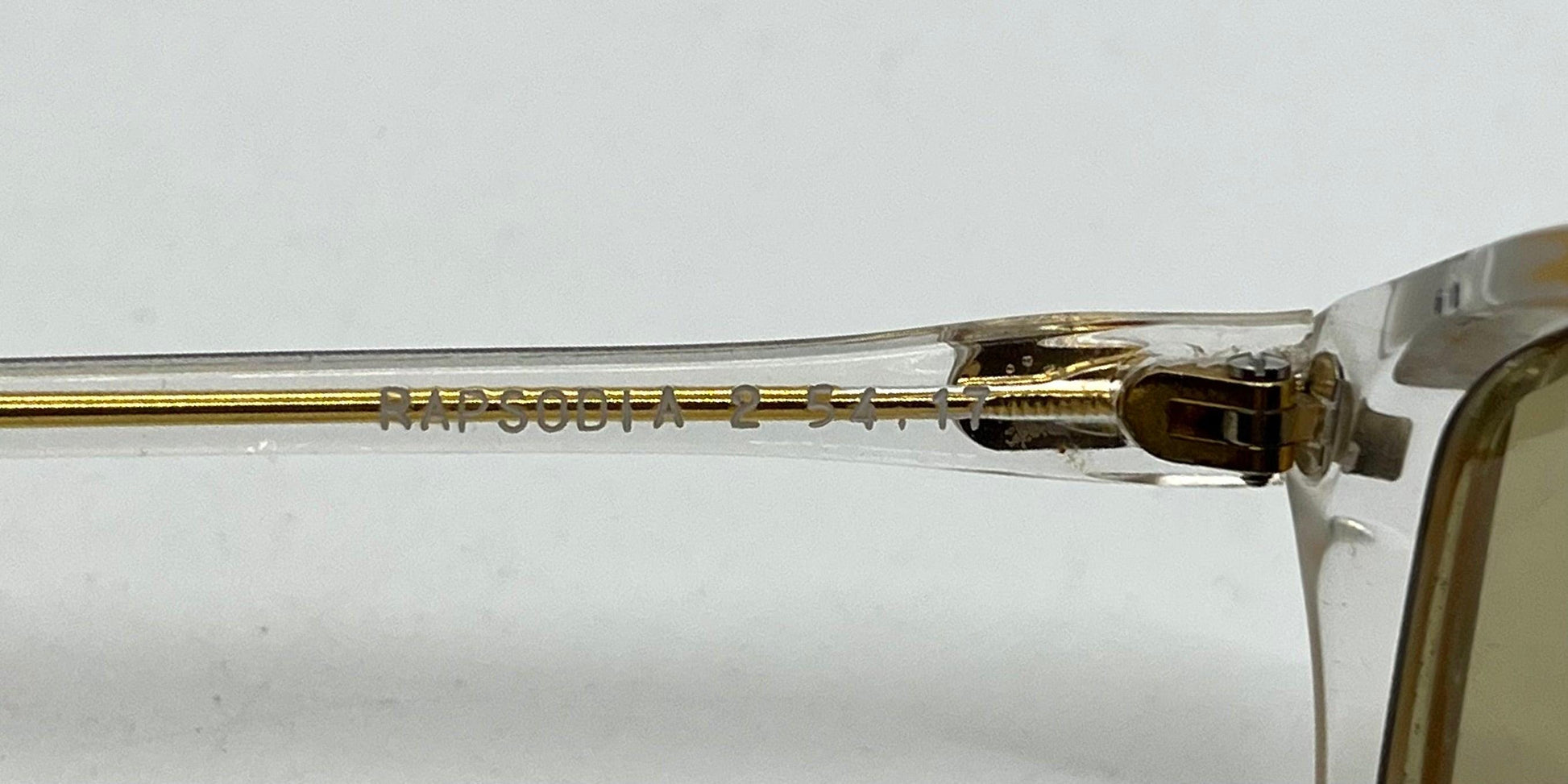 Fitted with brand new custom lenses by Berko's Designs, these lenses feature a rich solid golden bronze tint that enhances both clarity and warmth. Designed specifically for this vintage frame, they offer full UV protection and a unique tonal profile that blends seamlessly with the transparent and gold structure of the Rapsodia.