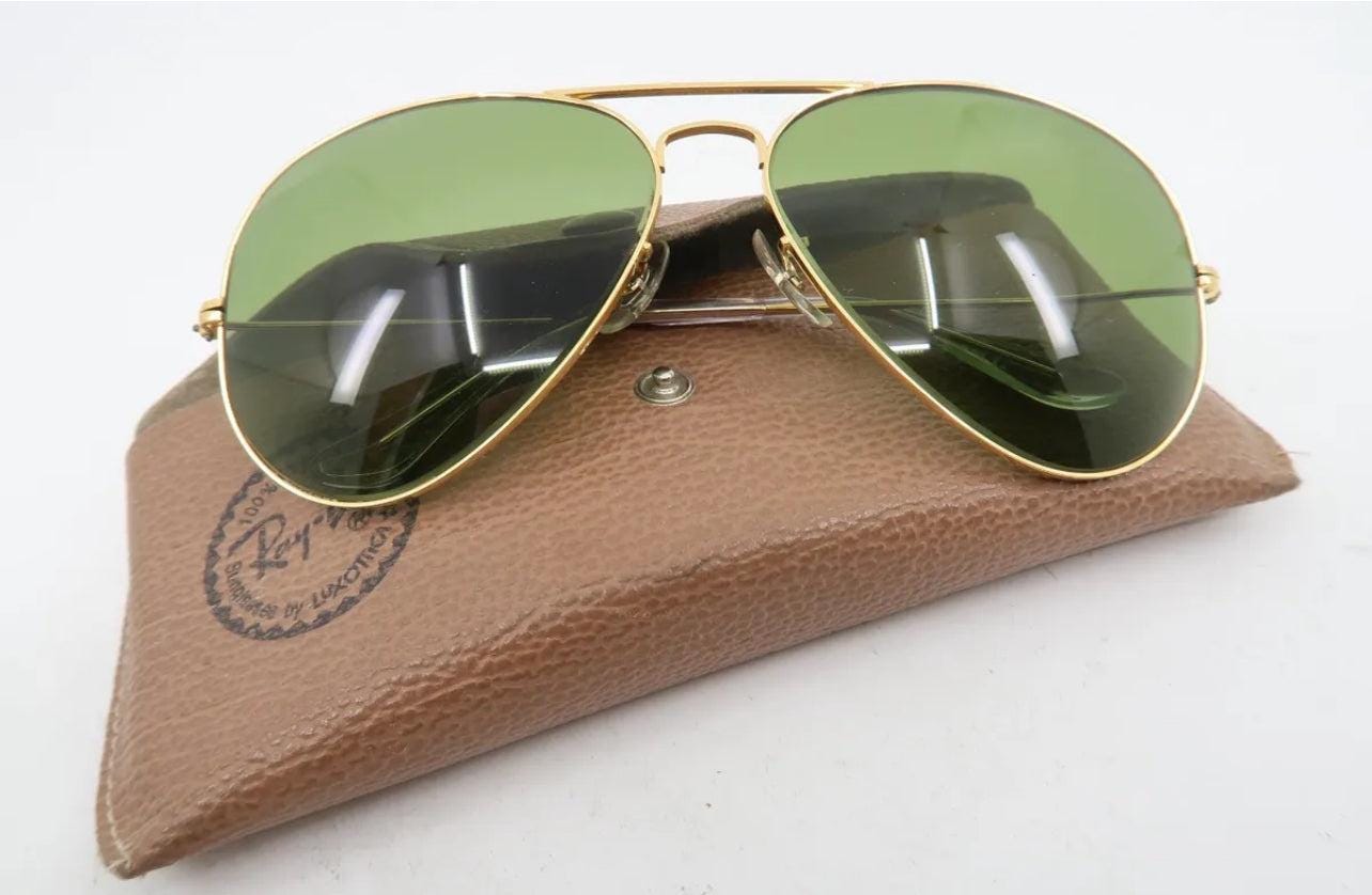 Vintage B&L Rayban Aviator Sunglasses W|Case-BL Green Tempered Glass Lenses-Usa