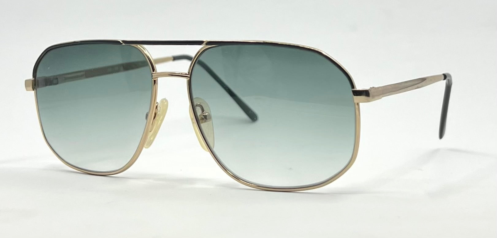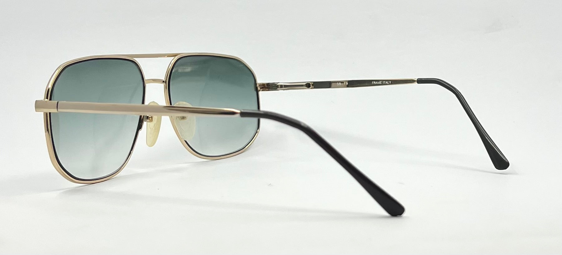 Classic Italian aviator design from the late 1980s to early 1990s. The Georgio Felini 9788 features a gold metal frame with a black enamel brow line, handcrafted in Italy. Equipped with spring hinges for comfort and flexibility.