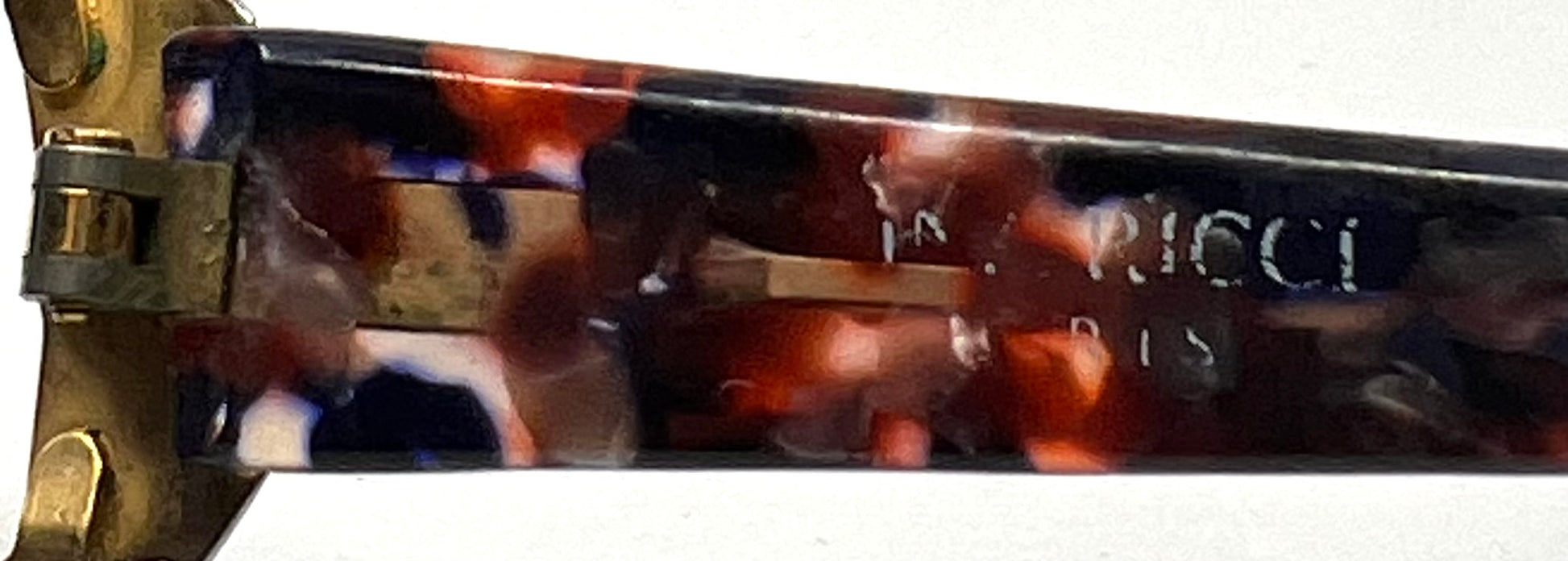 A striking example of late-1980s to early-1990s Nina Ricci Paris eyewear, featuring sculpted marbled tortoise acetate and signature gold-tone hardware. Feminine, architectural, and unmistakably European in design, this model captures the glamour-forward era that defined Ricci accessories during this period.