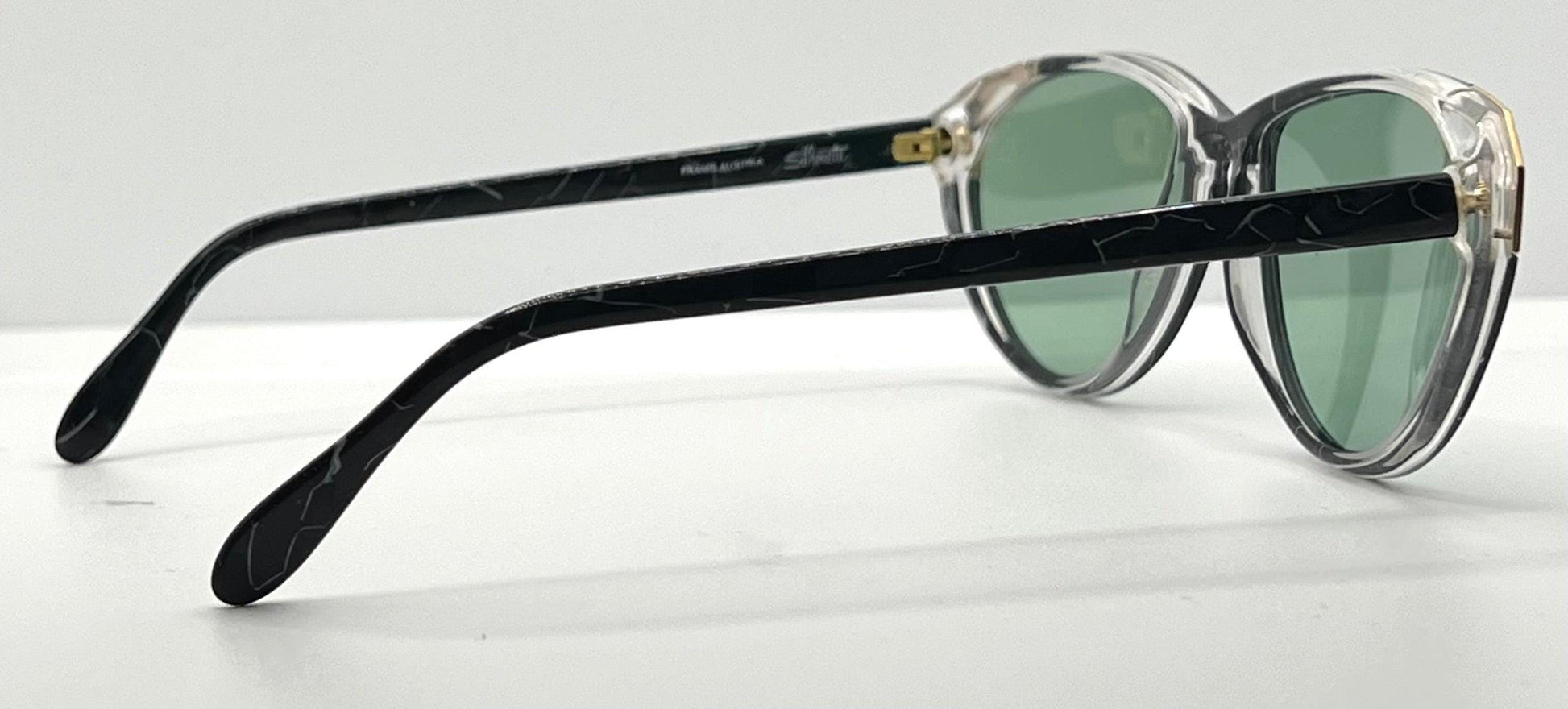 Produced during the peak of Silhouette's bold design experimentation, this model reflects the fashion-forward eyewear trends of the late 1980s and early 1990s. The sculptural gold hardware, crystal-clear detailing, and marbled black acetate combine architectural precision with timeless style.