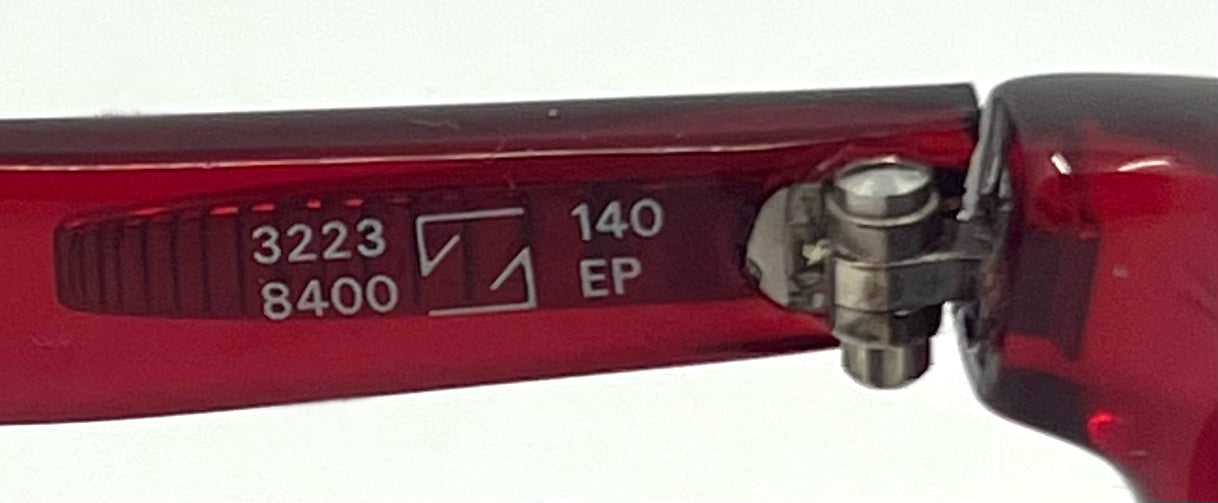 (Size markings are factory-stamped on the interior temple — see photos.)