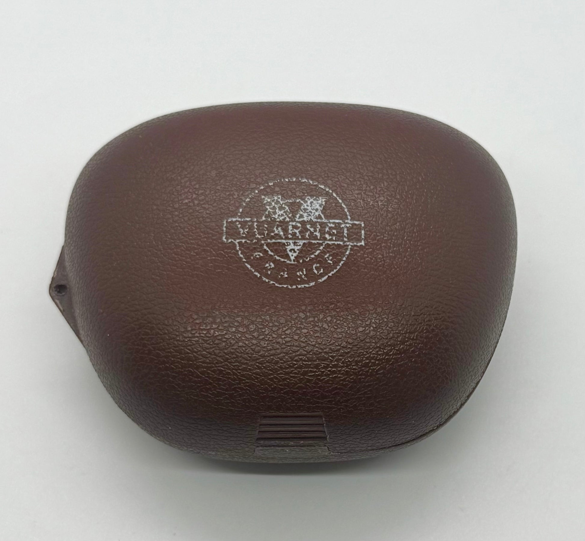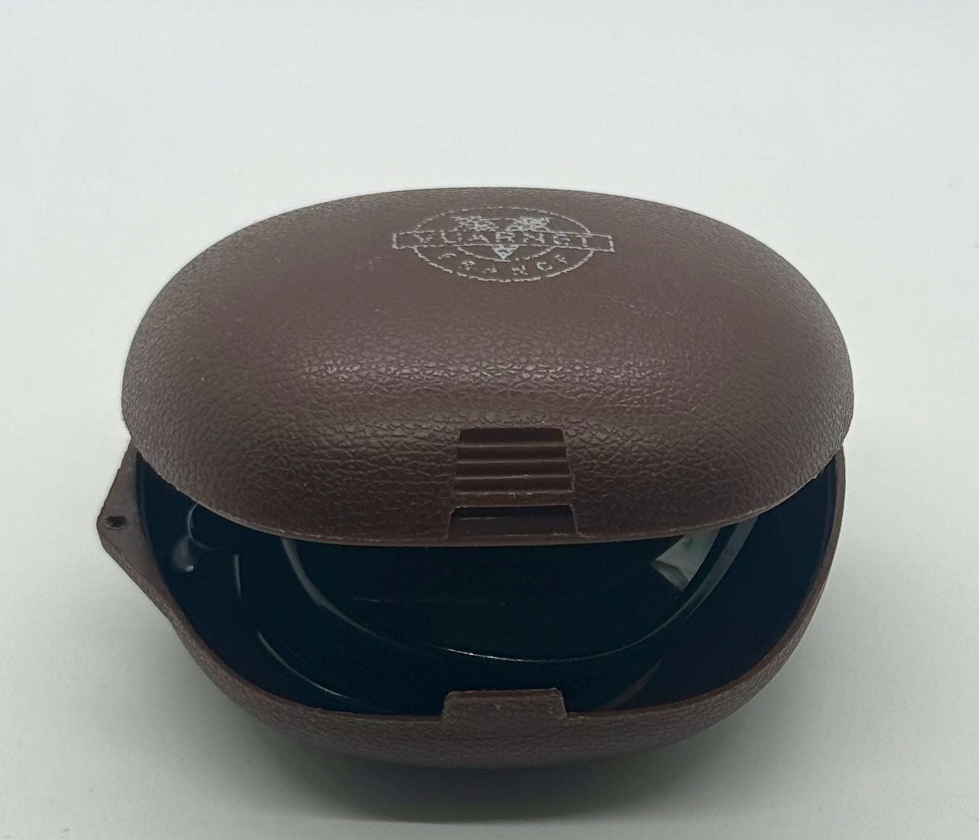 - Original Vuarnet hard brown folding clamshell case with embossed Vuarnet France logo